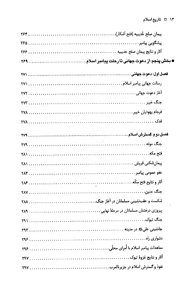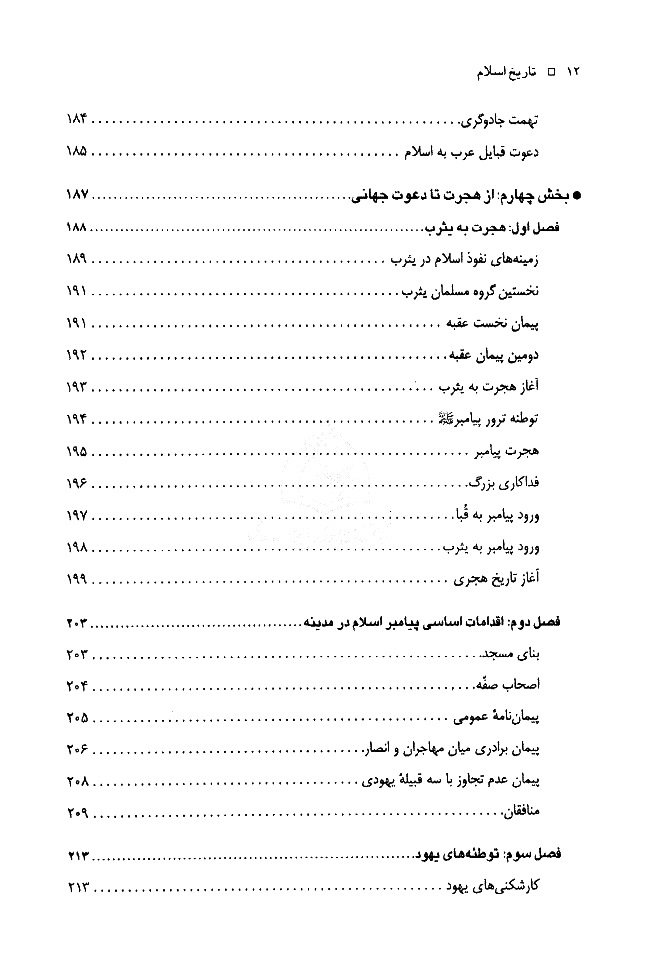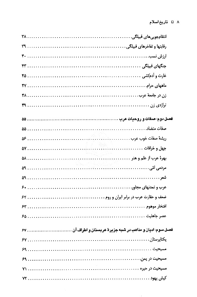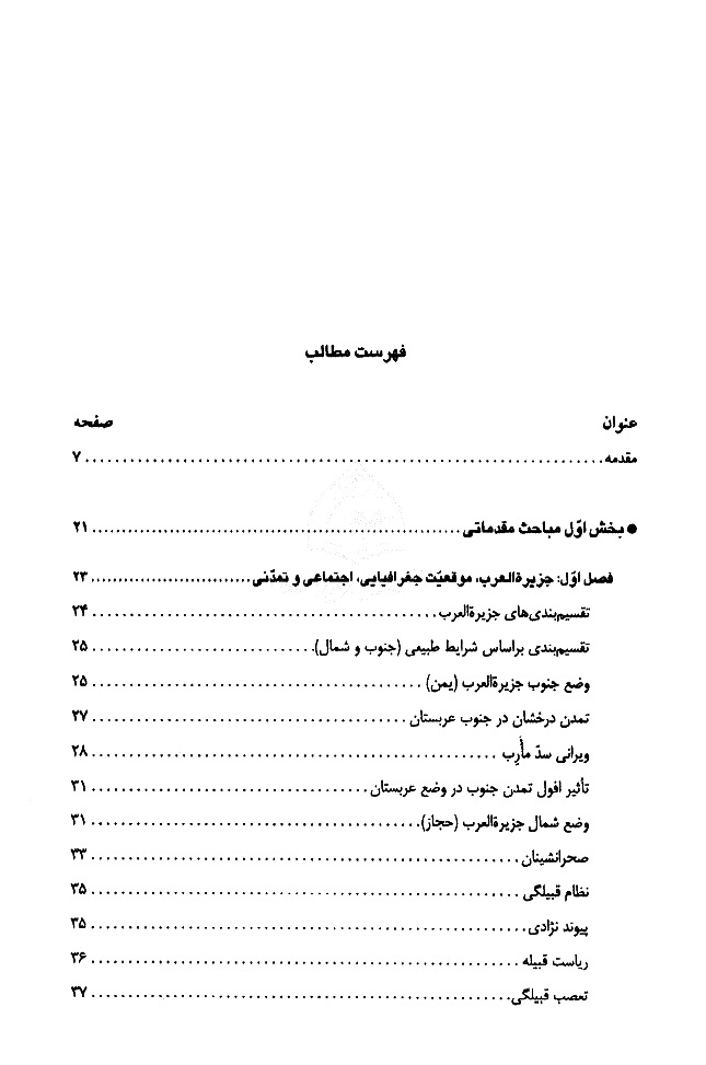 1. مباحث بخش اول كتاب مربوط به وضع جزيرة العرب پيش از ظهور اسلام (مباحث مقدماتى) به تفصيل مطرح شده است؛ زيرا بدون آگاهى كامل از وضع جزيرة العرب در دوران جاهليت، فهم و تحليل بسيارى از حوادث تاريخ اسلام مقدور نبوده يا حداقل ناقص است. از آنجا كه بسيارى از حوادث، ريشه در دوران جاهليت دارد، لازمۀ پى بردن به وضع جزيرة العرب پس از ظهور اسلام، شناخت وضعيت آن پيش از ظهور اسلام است. بنابراين براى فهم و درك پيوند حوادث، و نيز آگاهى از تحول بنيادين كه با ظهور اسلام در اين منطقه صورت گرفت مطالب اين بخش كمى با تفصيل آمده است. در مقابل سعى بر آن شده كه در بخشهاى بعدى تا حد ممكن ايجاز و اختصار رعايت، و تفصيل و توضيح جزئيات به استاد واگذار شود.