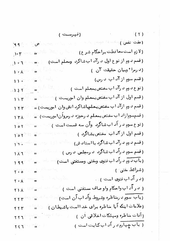 مخفی نماند که حقیر چون قصد داشتم مبتدی از این کتاب شریف استفاده نماید لذا از اول بنای ترجمه باب دوم و سوم را نداشتم چه که باب دوم راجع بآداب فتوی ومفتی ومستفتی و باب سوم راجع بآداب مناظره که هر دو باب آنها مختص بمقام اجتهاد است بود - جز آنکه استاد معظم حضرت حجه الاسلام و المسلمین آقای آسید علی علامه فانی اصفهانی حفظه الله عن کید الحاسدین بعد از اطلاع بر آن و تشویق بسیار امر فرمودند که باید رعایت حق صاحب کتاب بشود و آن دو بابهم ترجمه گردد لذا حسب الامر ایشان آن دو باب را هم ترجمه نمودم و امیدوارم قبول طبع همگان واقع گردد و هر لغزشی در این کتاب شریف دیدند بقلم عفو خود اصلاح این نمایند و خورده گیری نکنند زیرا عصمت مختص باهلش میباشد