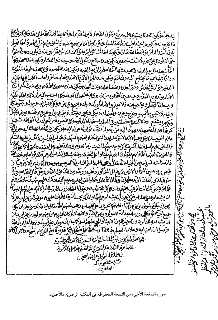 و حيث انّ الإمامة و الخلافة لنبيّنا العظيم محمد المصطفى صلّى اللّه عليه و آله و سلّم كانت في أمير المؤمنين و إمام المسلمين عليّ بن أبي طالب عليه السلام و الأئمّة الأحد عشر من ولده بنصّ من الرسول الكريم صلّى اللّه عليه و آله و سلّم و بما أبدوه من معاجز، و أثبتوه من عصمتهم، و أظهروه من علومهم و معارفهم، فإنّ إثبات هذه الإمامة و استمرارها طيلة العصور المتمادية لا يتمّ إلاّ بنشر تلك العلوم، و بثّ تلك المناقب و المعاجز.
