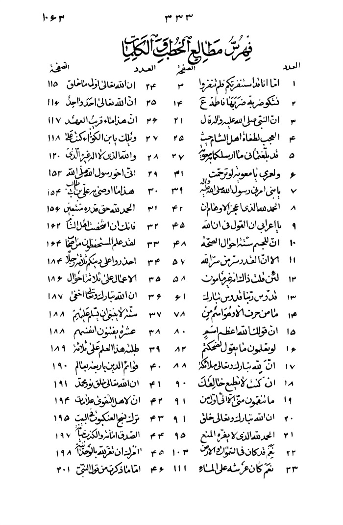 امّا بعد فلا يخفي علي اولي اللّبّ و النّهي و الدّراية و الحجي في انّ اعلي الكلام كلام الملك العلاّم القران الحكيم و الكتاب الكريم الّذي تحدّي الفصحاء من العرب العرباء ان يأتوا بمثله او بسورة من سوره فاعترفوا بالعجز لفصاحته و بلاغته و قصورهم عن الاتيان بمثله او سورة من مثله فاقرّ المنصف الماهر و اصرّ المتعسّف المكابر فلجاء الي القتال بالسّيوف و تجرّع مرارات الحتوف و بغده كلام شمس الظّلام و بدر التّمام افصح العرب و العجم من اوتي جوامع الكلم المنزل في شانه ما ينطق عن الهوي ان هو الاّ وحي يوحي صلّي اللّه عليه و آله و سلّم ثمّ بعد ذلك احسنه و اتقنه و افصحه و ابلغه و ابينه و امتنه كلام من هو في امّ الكتاب لدي اللّه لعليّ حكيم المحتوي لاتمّ الكنايات و ابلغ النّهايات و ادّل الدّلالات ما اطيب وعظه و خطابه و ما احلي كلامه و كتابه فعلي روّام العلوم و طلاّب الحكم ان يجعلوا اعظم اجتهادهم و يصرفوا جلّ عناياتهم في ارتيادهم