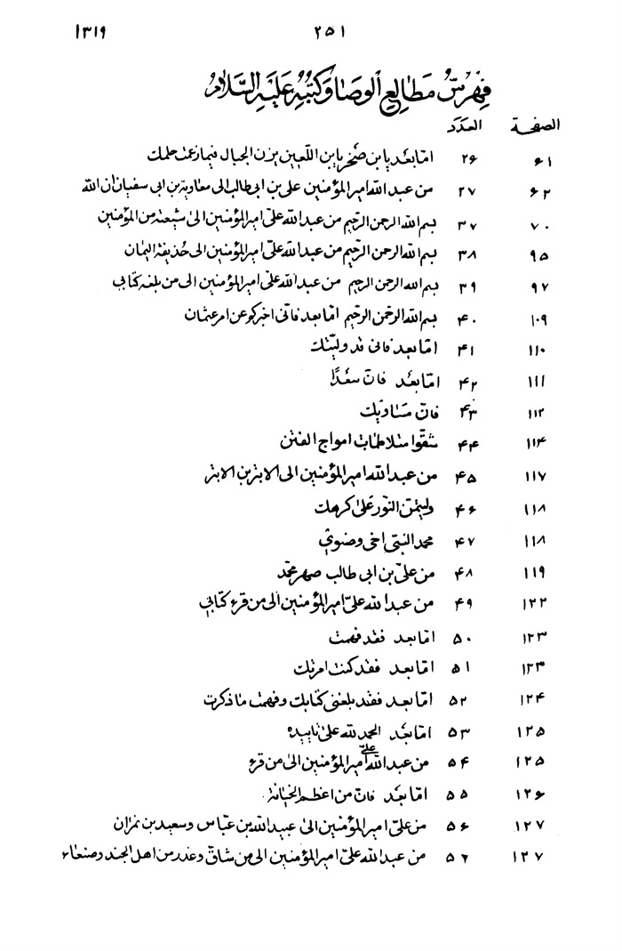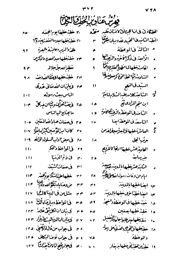 كتاب منتخب كنز العمّال في سنن الاقوال و الافعال تاليف الشيخ الامام علاء الدين علي بن حسام الدين الشهير بالمتقي الهندي و هو المطبوع بهامش كتاب مسند ابن حنبل امام الحنابلة في المطبعة الميمنة بمصر سنة 1313 ه نقلتها عن الجزء السادس من المسند ص 315 روي عن وكيع و العسكري في المواعظ عن يحيي بن عبد اللّه بن الحسن عن ابيه قال كان عليّ(عليه السّلام)يخطب فقام اليه