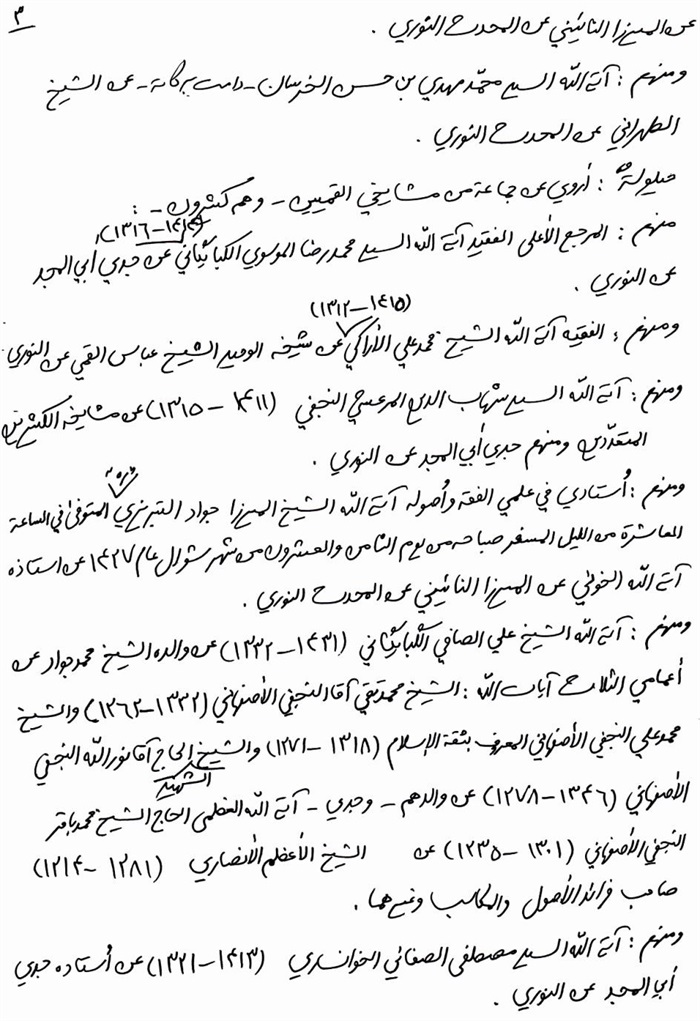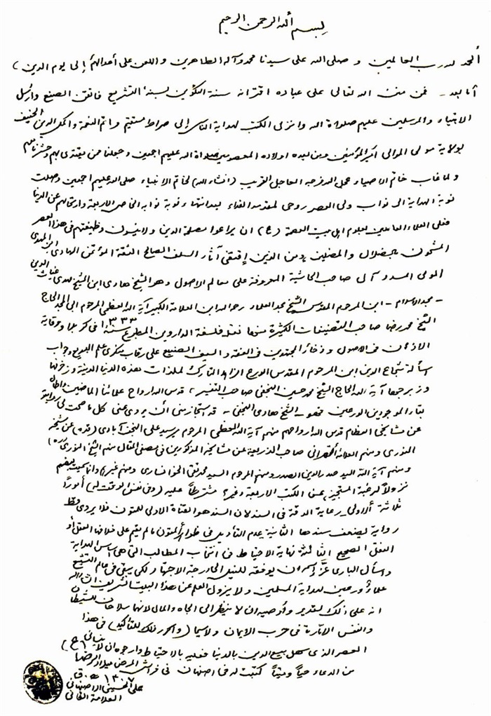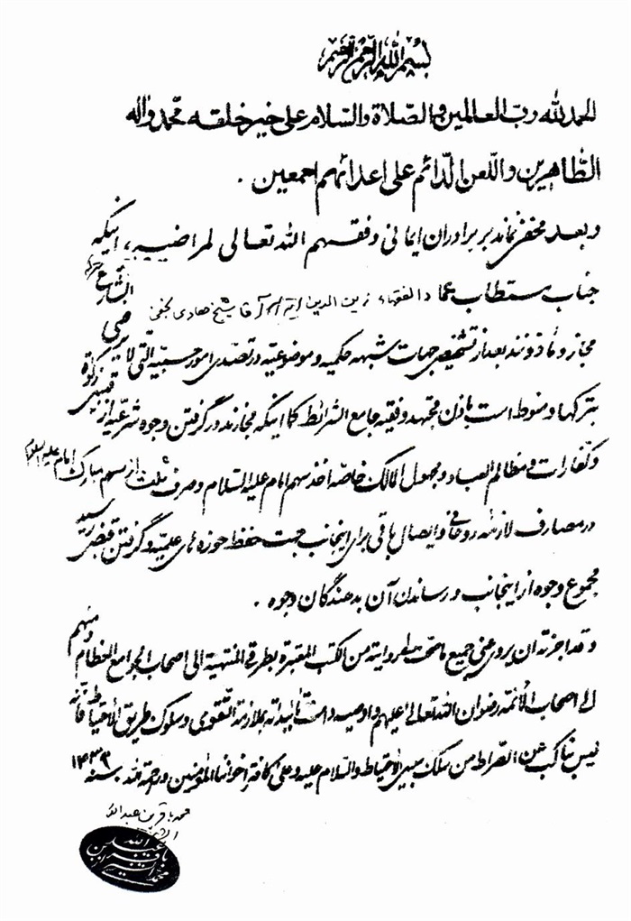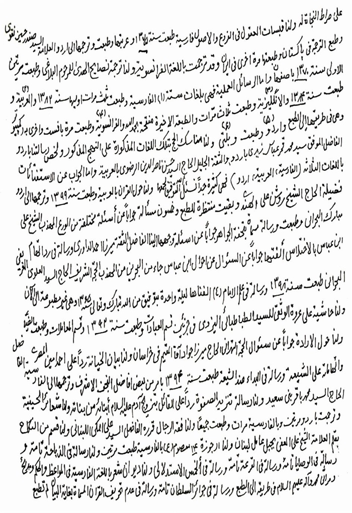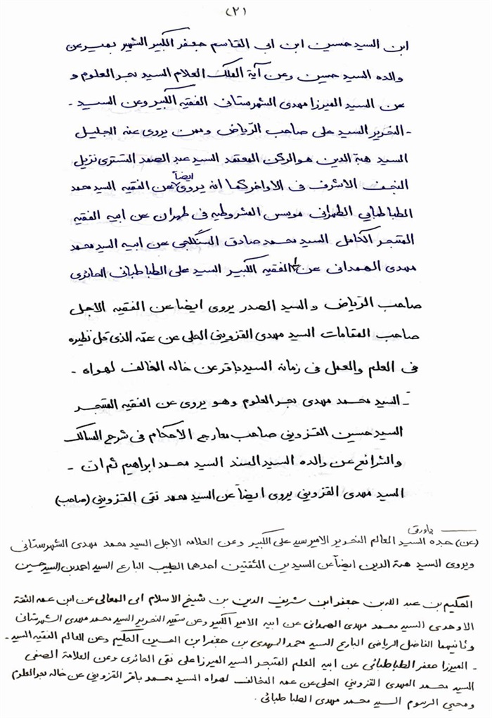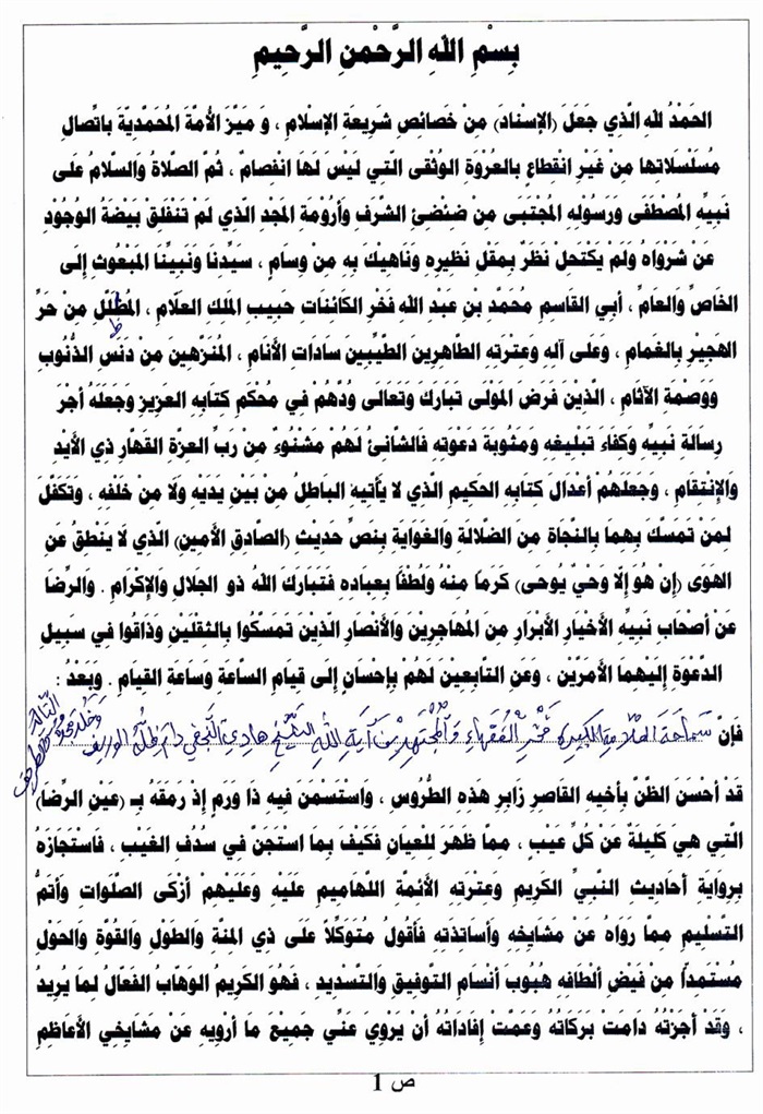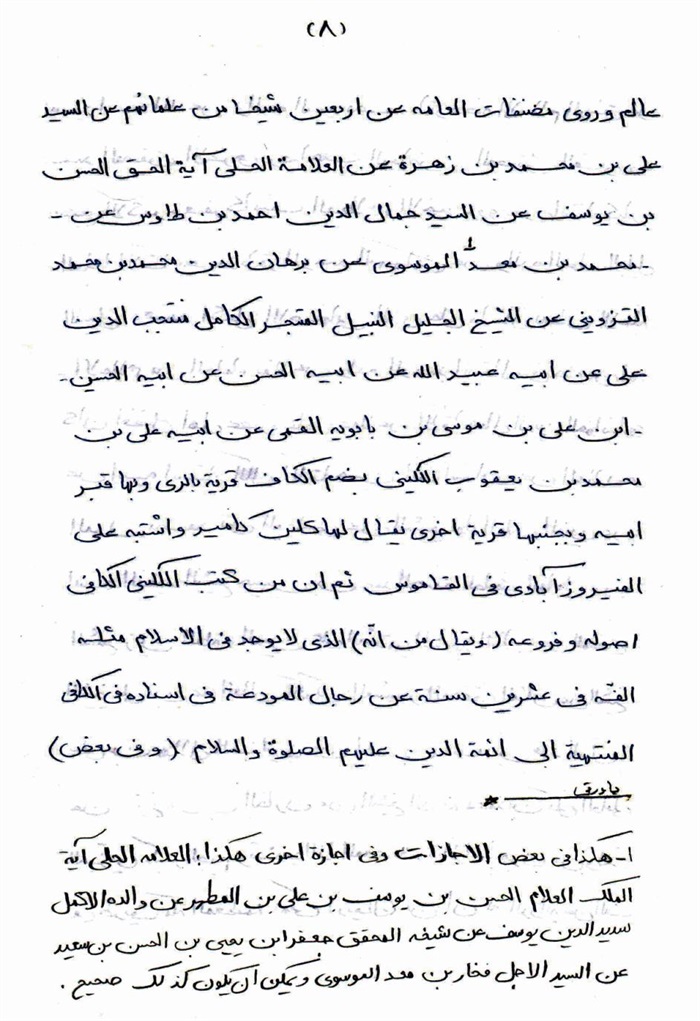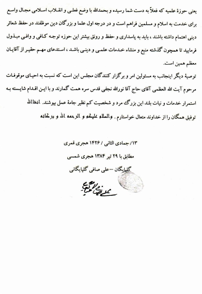 ثمّ لابدّ أن أذکر أنّ لي إجازات أُخرى غير مذکورة في هذه الرسالة وهي جميع إجازاتي الکثيرة في الأمور الحسبية فإنّها غير مذکورة هنا إلّا ما ورد في ذيلها الإجازة الروائية.