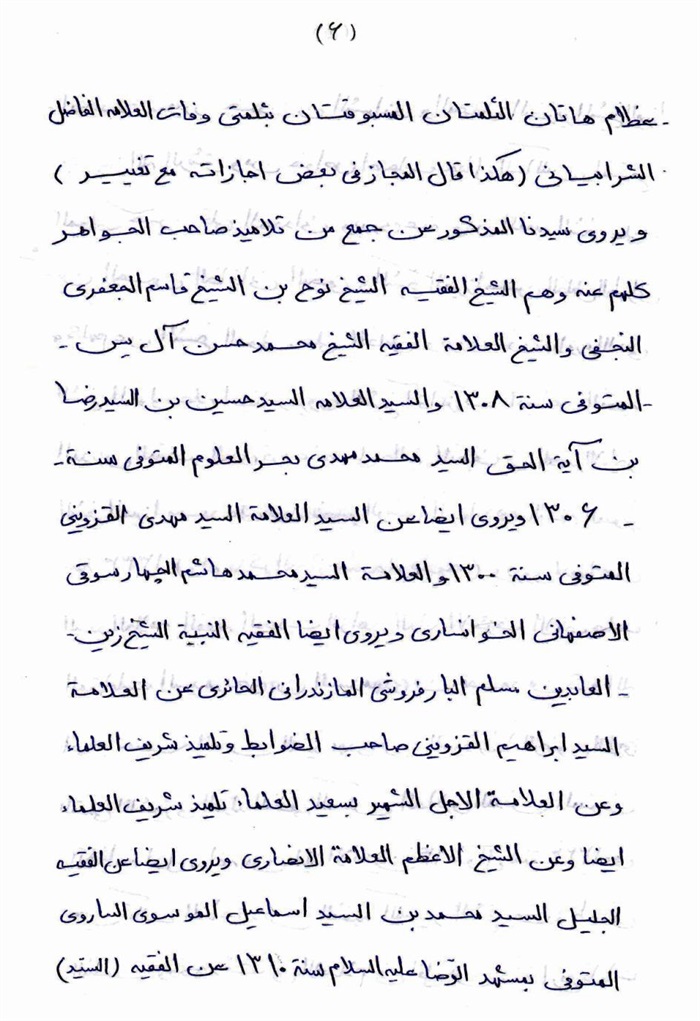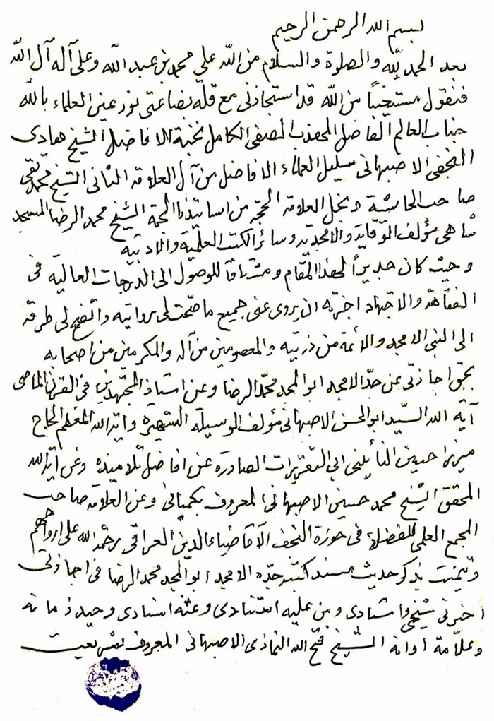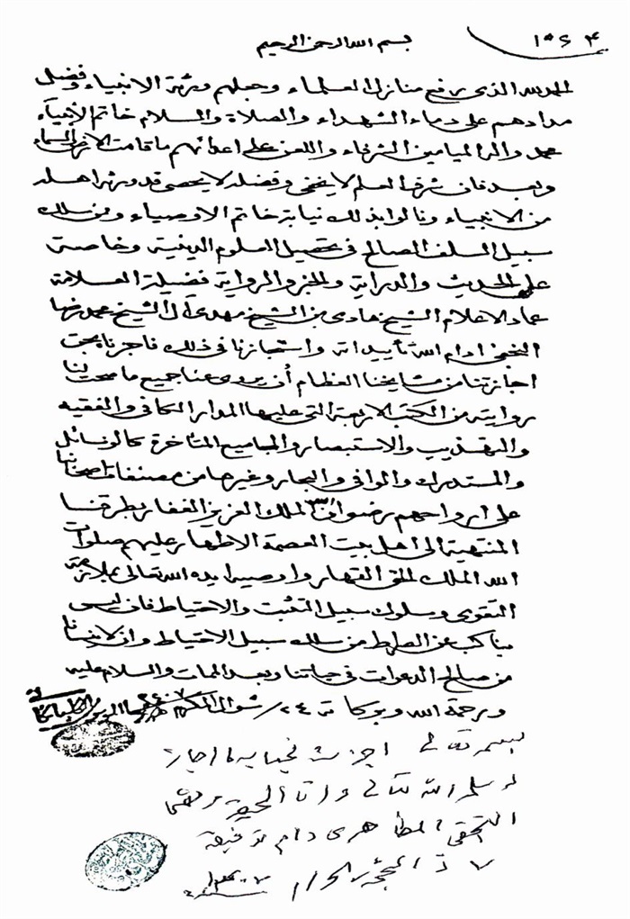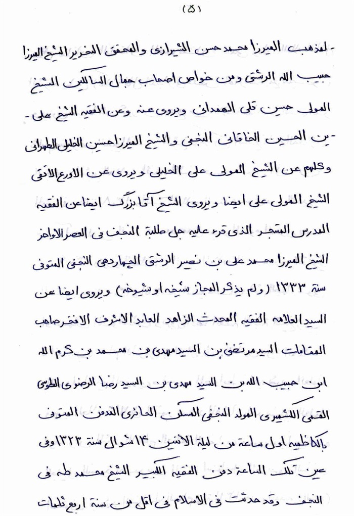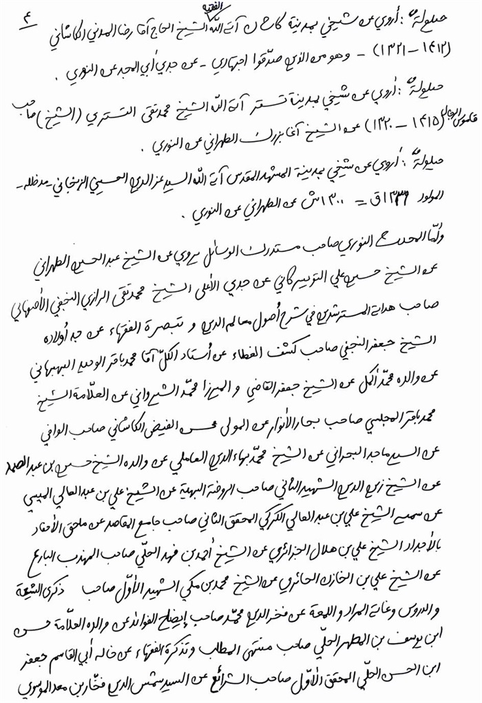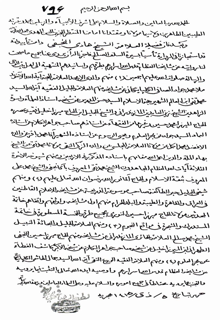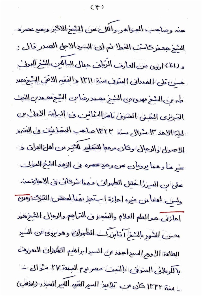 ثمّ لابدّ أن أذکر أنّ لي إجازات أُخرى غير مذکورة في هذه الرسالة وهي جميع إجازاتي الکثيرة في الأمور الحسبية فإنّها غير مذکورة هنا إلّا ما ورد في ذيلها الإجازة الروائية.