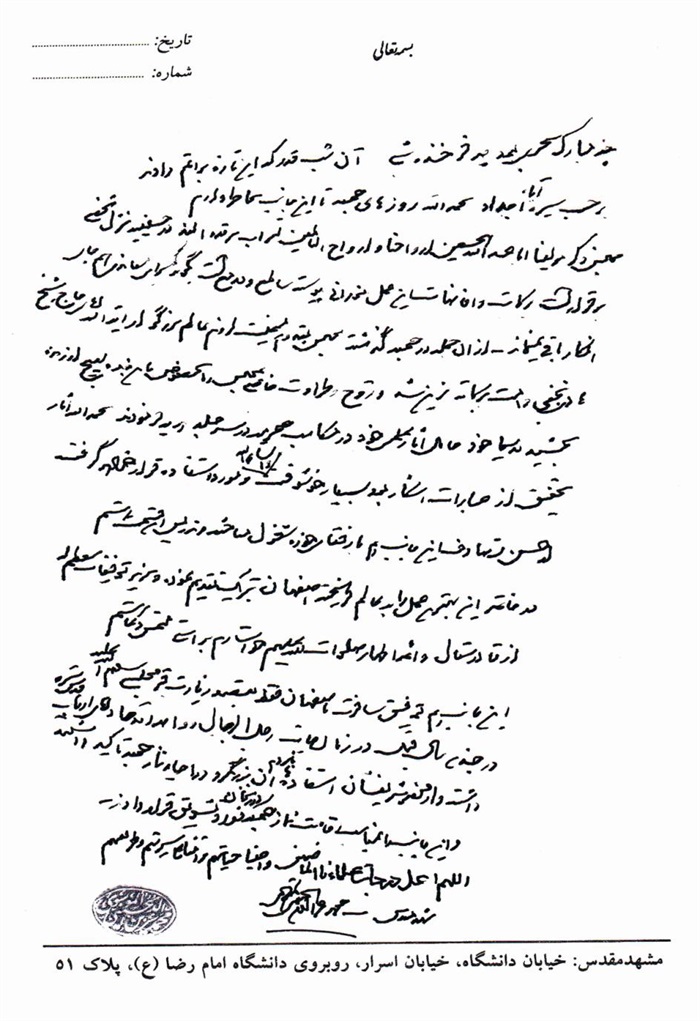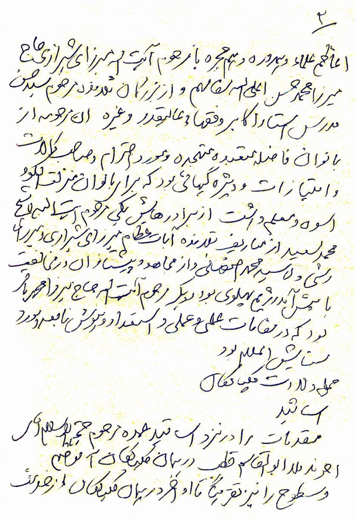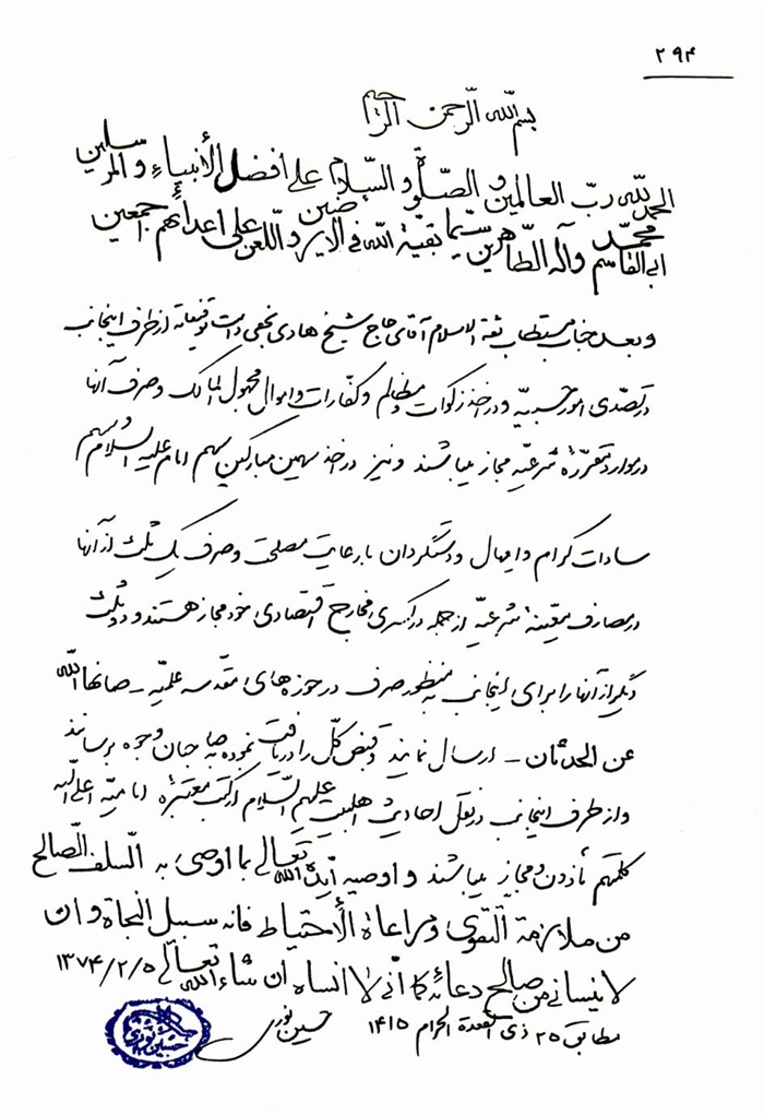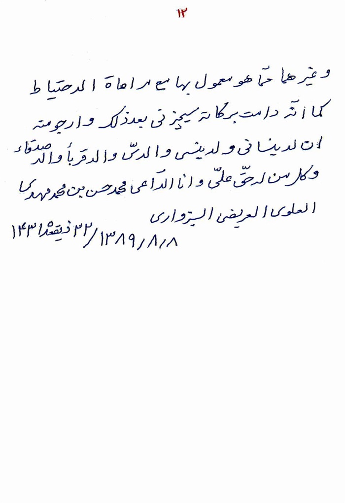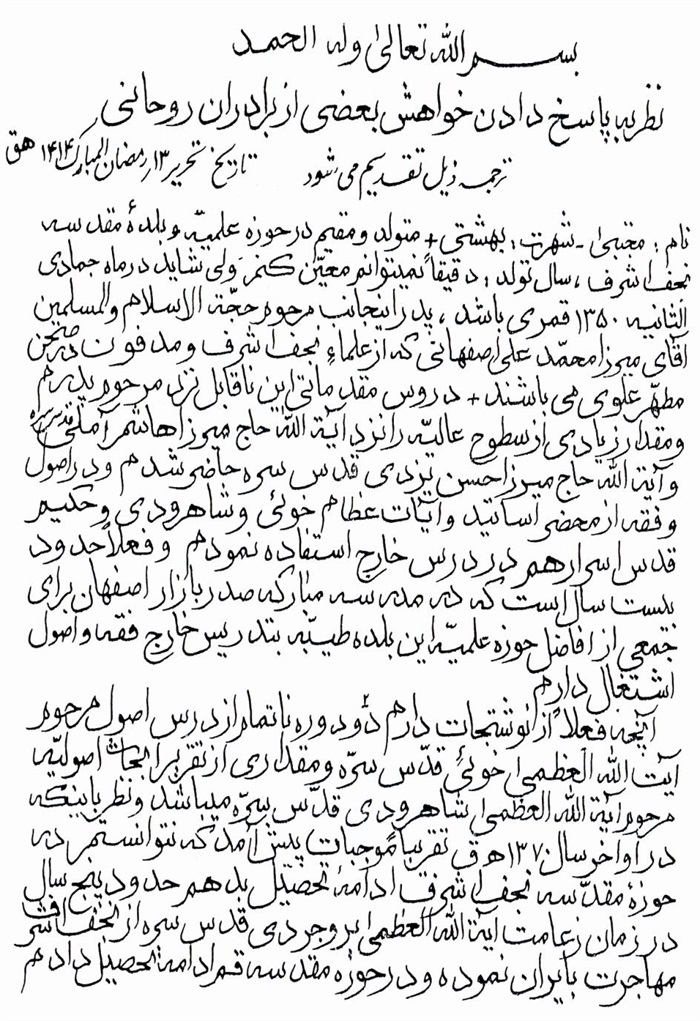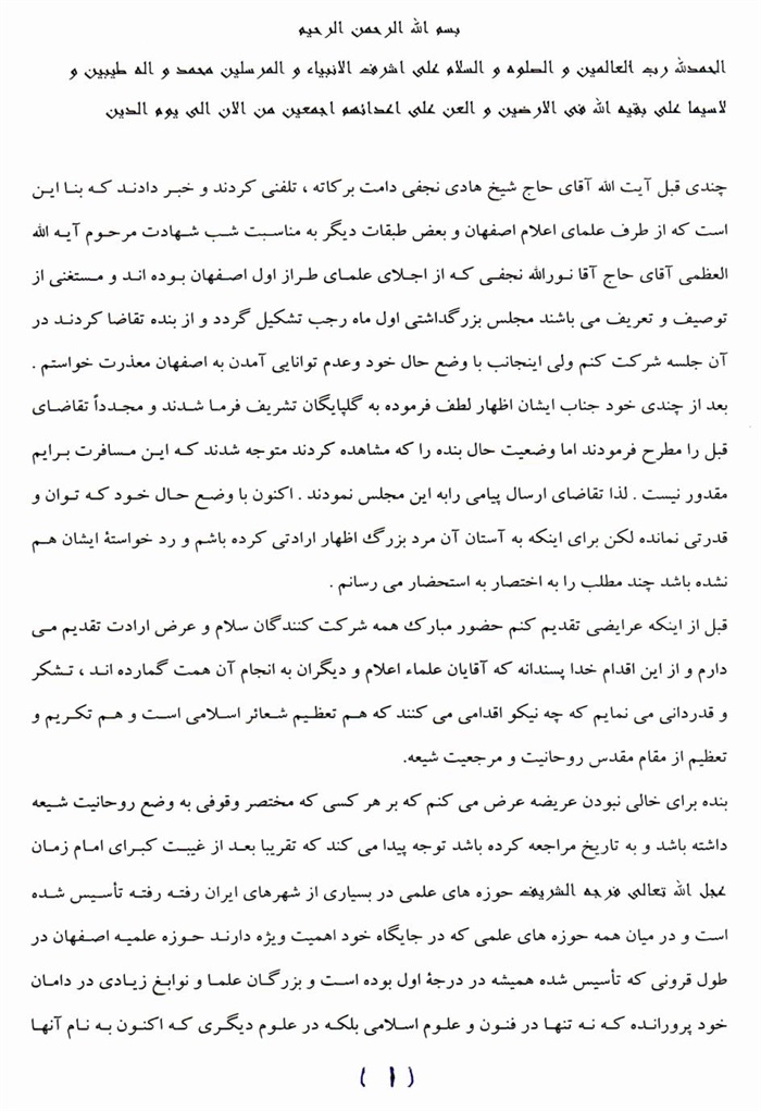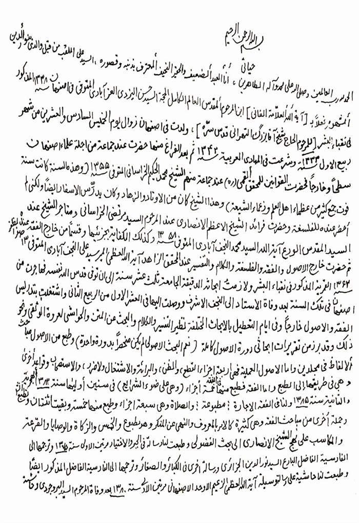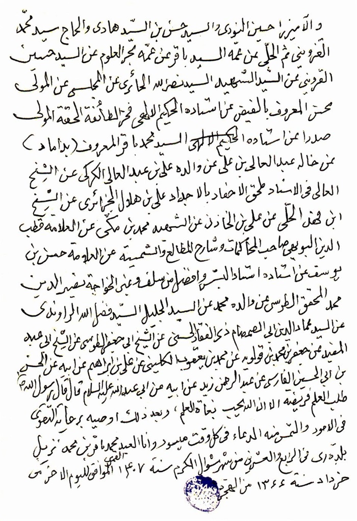 ثمّ لابدّ أن أذکر أنّ لي إجازات أُخرى غير مذکورة في هذه الرسالة وهي جميع إجازاتي الکثيرة في الأمور الحسبية فإنّها غير مذکورة هنا إلّا ما ورد في ذيلها الإجازة الروائية.
