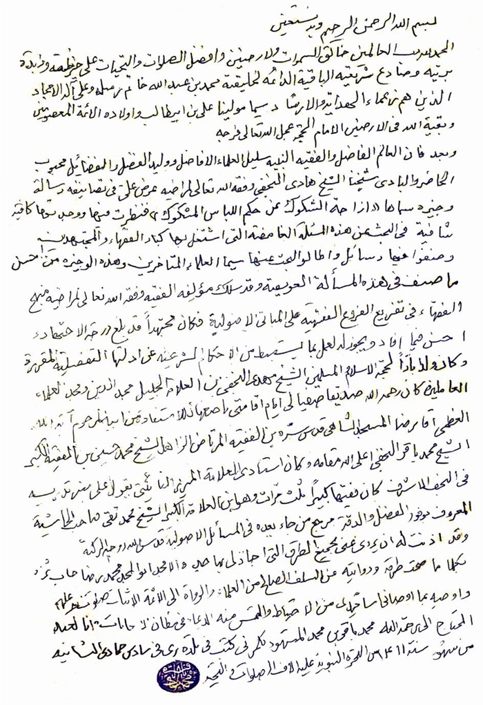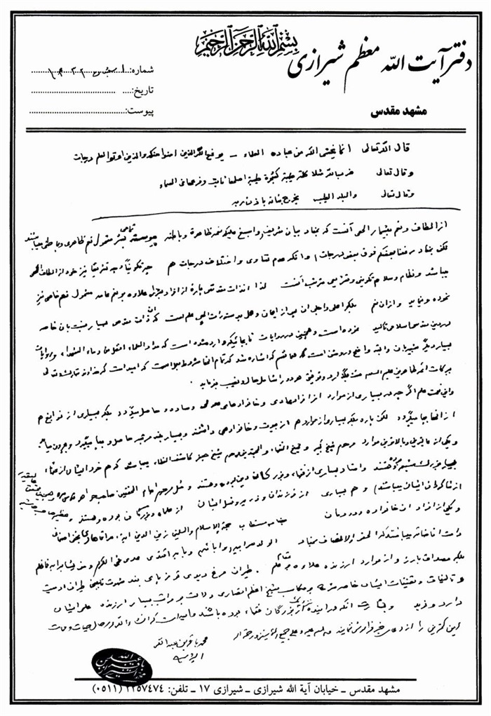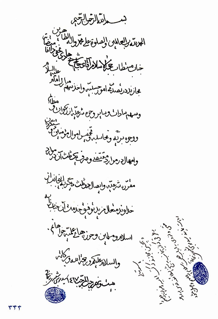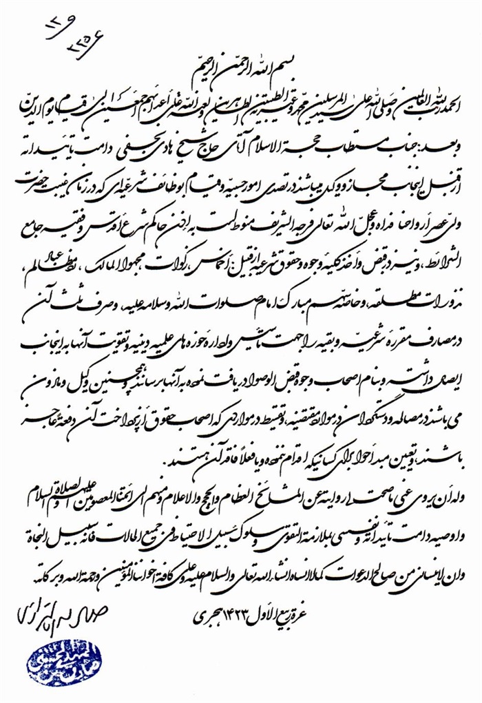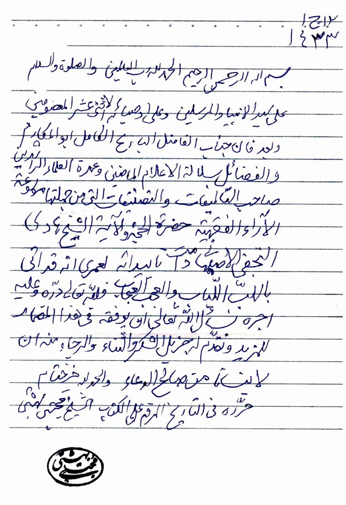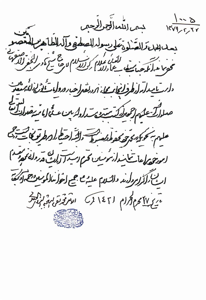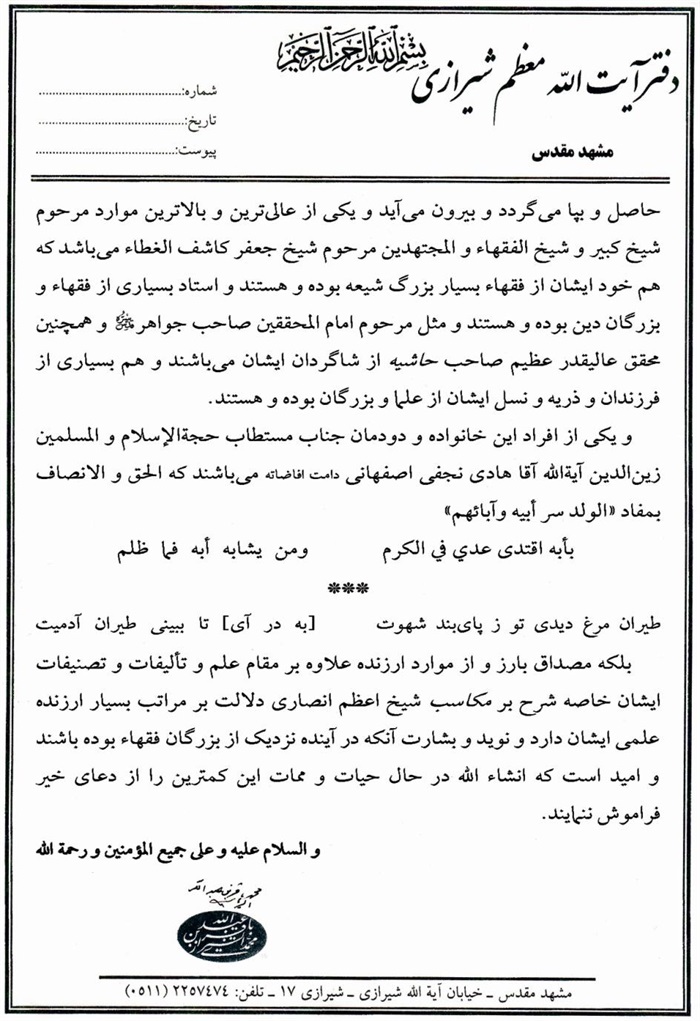 إجازة الفقير البغدادي إلى الفقيه الهادي.................................................. 316