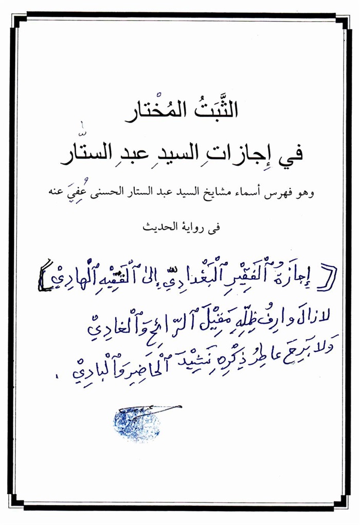 الثّبت المختار في إجازات السيّد عبدالسّتار في رواية الحديث........................ 297