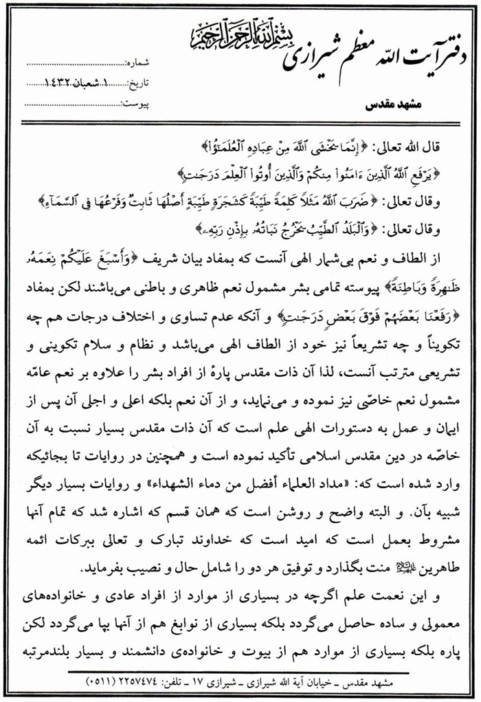 درسه في البحث الخارج فقهاً وأصولاً..................................................... 323