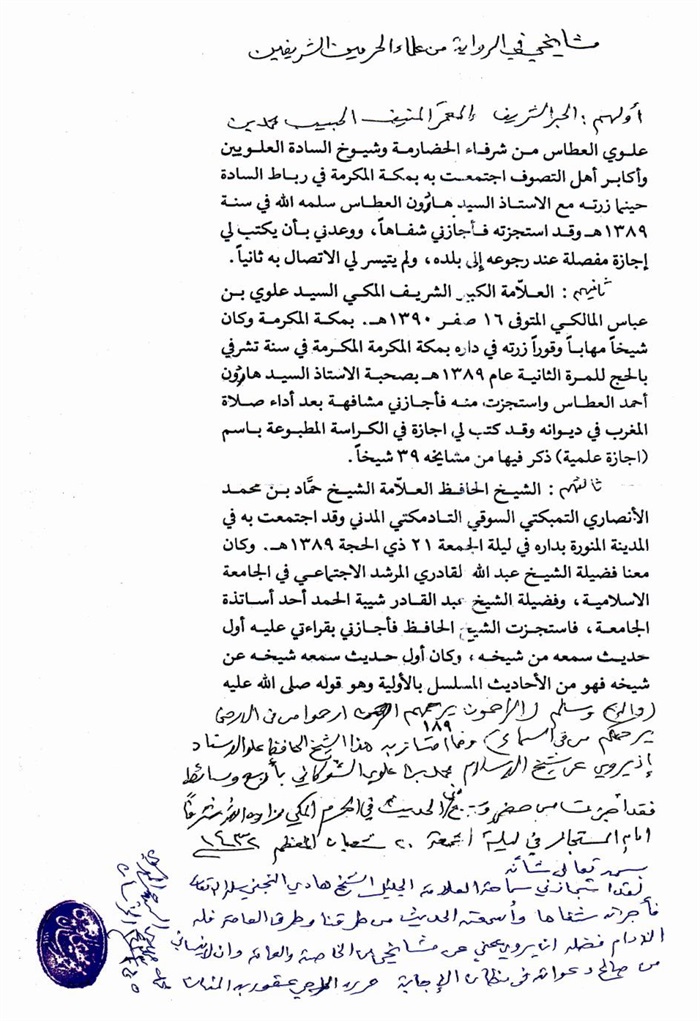 الذين رووا عنه آثار المجد والسداد مسلسلاً بالآباء والأجداد.
