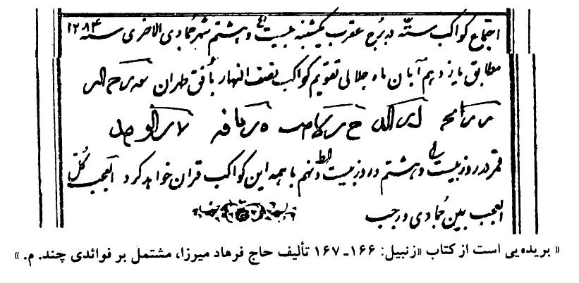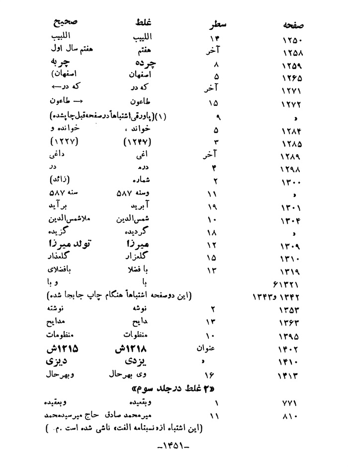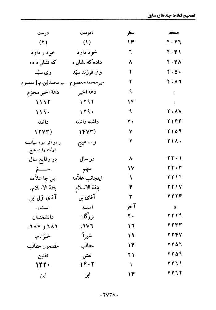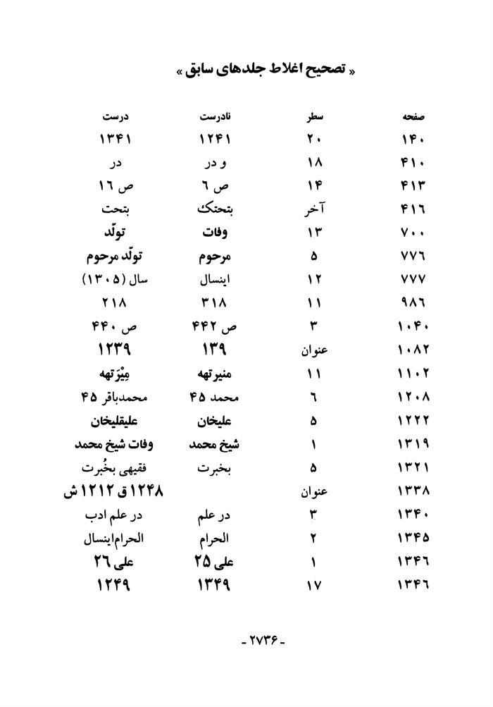 در صفحه (2292 س 4) گذشت که سوم ماه رجب (1280) دوشنبه بوده و همین درست مطابق ضبط و ستنفلد است جز اینکه در صفحهٔ پس از آن (س 19) تولد مدیر حبل المتین از تاریخ جراید و مجلات ایران در شنبه 13 رجب آمده که البته در نقل اشتباهی واقع نشده است مرحوم صدر هاشمی نیز از سال دهم مجلهٔ «ارمغان» آورده و آن نقل نیز مطابق با مجله می باشد.