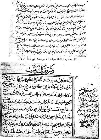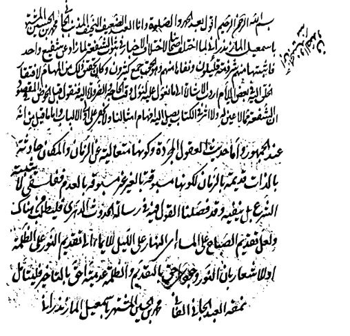 «فارسی» در توحید از آخوند ملا محمد اسمعیل بن محمد جعفر اصفهانی که آنرا بنام ناصرالدینشاه قاجار معنون ساخته است و تاریخ کتابت را (19 ج 1293/2)