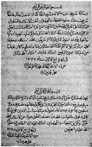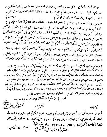 3- اجازه كبيره (اسناد حديث): سيد عبد اللّه جزائرى، نسخه خطى