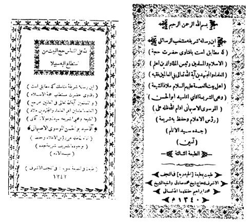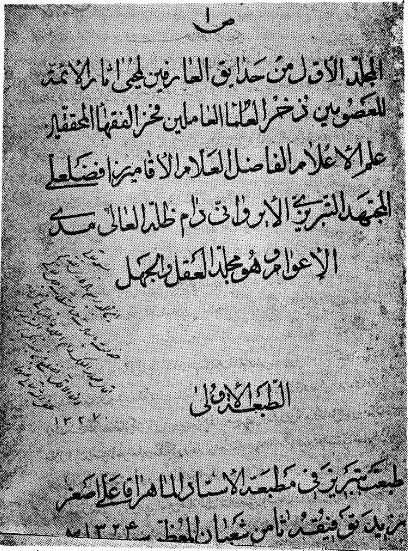 (3) در فهارس مشار (علیه الرحمه) است که اتمام الحجّة اثبات الحجة بزبان عربی است و بسال (1285) یعنی همان سال فوت مؤلّفش در تبریز چاپ سنگی شده است. .م.