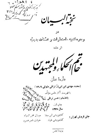 (1) در مأخذ گوید که سبیل النجاة خطّ مؤلّف را آستان قدس بسال (1323 ش) برای کتابخانه خریده و تاریخ تحریر نسخه جمادای یکم 1285 است امّا در «الذریعه 12: 141 : 953 »تاریخ فراغت 1275 چاپ شده که گویا اشتباه چاپی است از آفت معمول ارقام در فهرست گویند که شرح حال مؤلّف را در جایی ندیده اند و تاریخ فوت او از یادداشتهای صدیق الملک و نواده اش که در آغاز و انجام همان نسخه است مستفاد گشت.