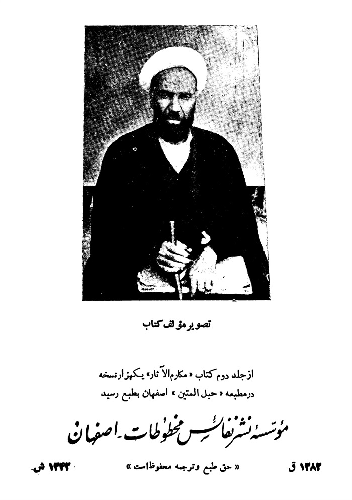 جلد اول کتاب «مکارم الاثار»در نهصد نسخه روی کاغذ کتاب در مطبعه محمدی اصفهان بطبع رسید