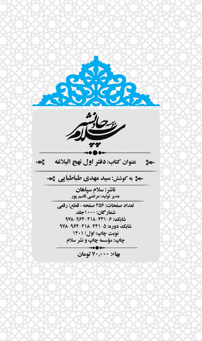 مشخصات نشر:اصفهان: سلام سپاهان، 1401 -
