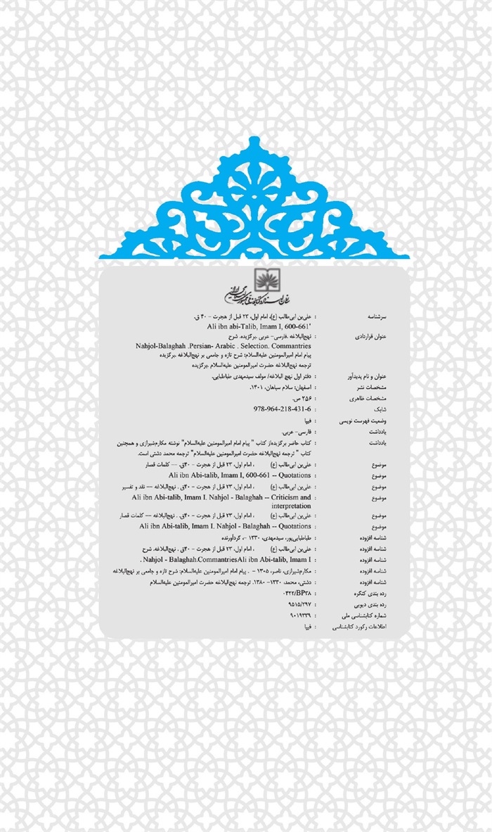 شناسه افزوده:مکارم شیرازی، ناصر، 1305 - . پیام امام امیرالمومنین علیه السلام: شرح تازه و جامعی بر نهج البلاغه