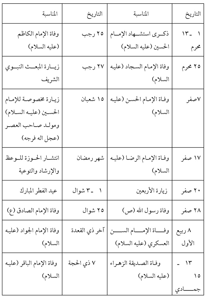 3- نشر الحوزات العلمية والمدارس الدينية والمعاهد القرآنية في جميع المدن لتعليم الفقه والعقائد والأخلاق والتعريف بفضائل أهل البيت (عليهم السلام) وسيرتهم المباركة، فإن مثل هذه الحوزات هي مصدر الإشعاع ومفتاح البركات للمجتمعات التي تحتضنها.