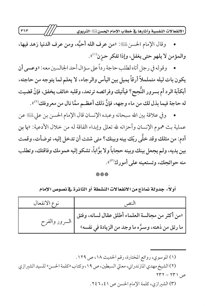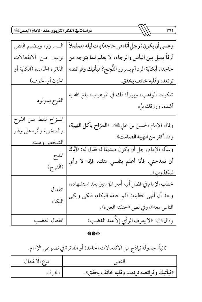 الانفعالات النفسية و آثارها في خطاب الإمام الحسن علیه السّلام التربوي...347