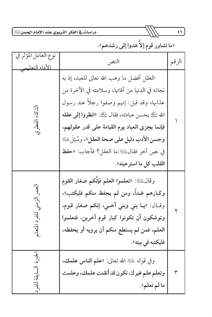 التعلم و التعليم في التراث التربوي عند الإمام الحسن علیه السّلام...19