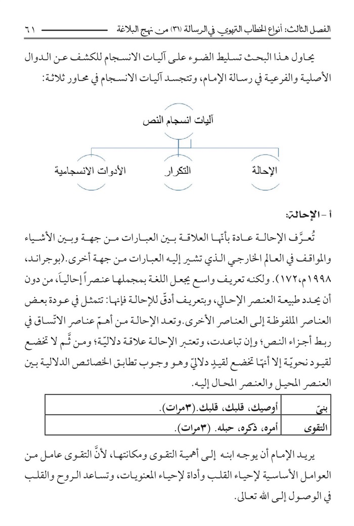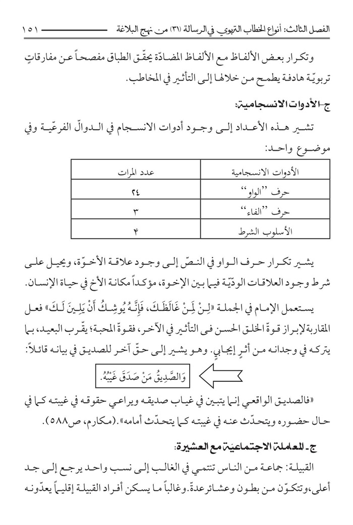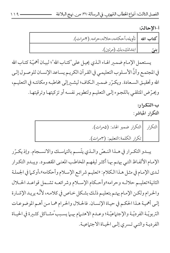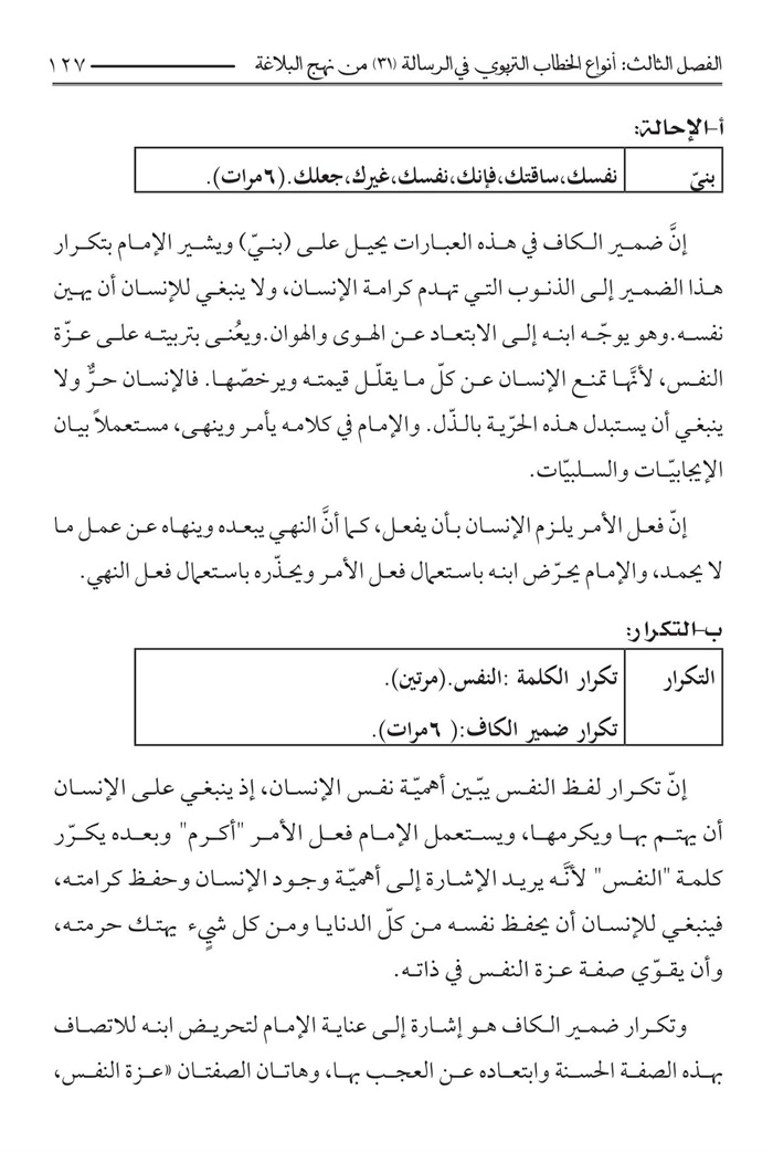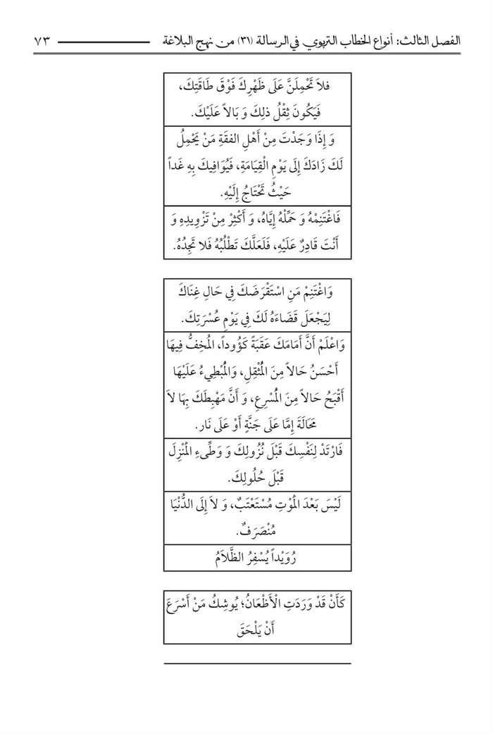 الفصل الثالث : أنواع الخطاب التربوي الرسالة 31 من نهج البلاغة