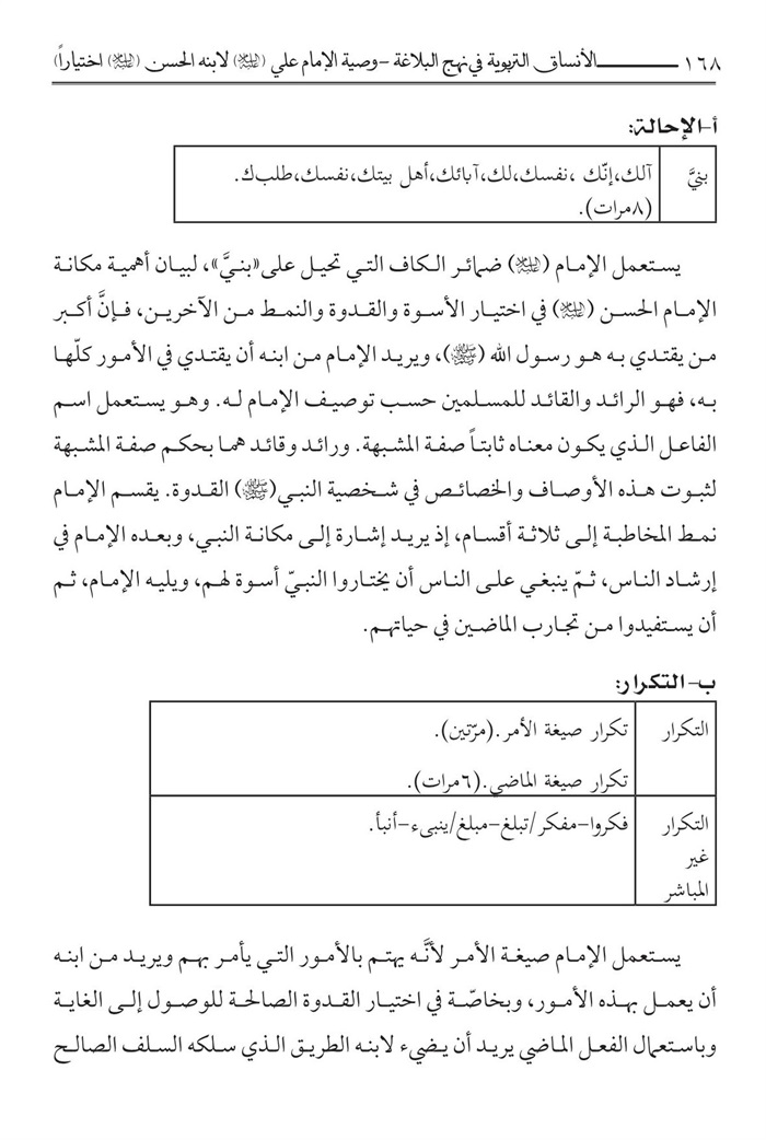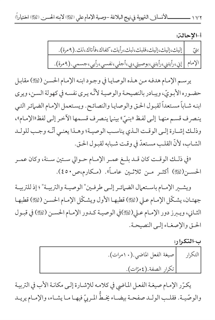 العنوان : الأنساق التربوية في نهج البلاغة : وصية الامام علي لأبنه الحسن (ع) اختيارا /
