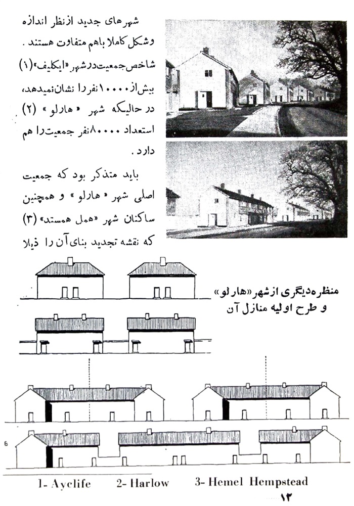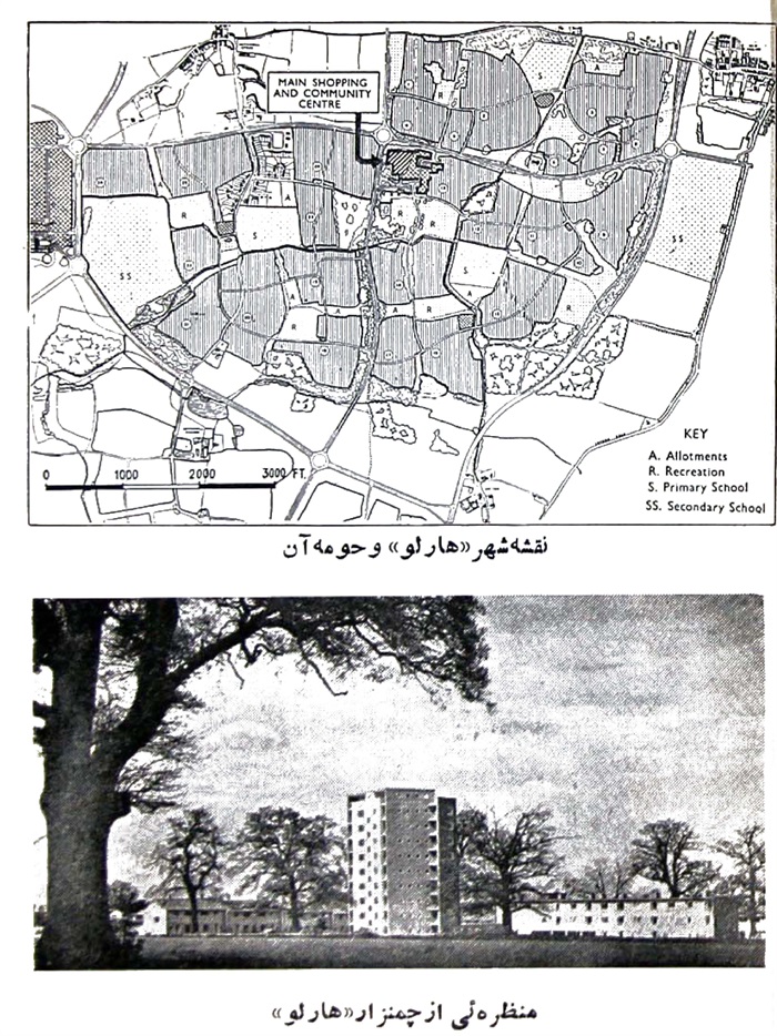 البته تغییر نقشه شهرهائی مانند تهران که متخصصان شهرساز را در برابر عمل انجام شده ئی قرار میدهد تا اندازه ئی مشکل و شاید هم غیر ممكن باشد ولی این امر را میتوان در مورد شهرهای جدید حومه تهران تعمیم داد. شهرهای جدید و نو بنیاد باید بنحوی ساخته و پرداخته شود که از هر حیث بتواند جوابگوی احتیاجات ساکنان آن باشد منظور اینستکه همه گونه موسسات اجتماعی از مدرسه درمانگاه مریضخانه گرفته تا میدانهای فروش خواربار سینما و تاتر وغیره در حوزه شهرها وجود داشته باشد تا ساکنان آن مجبور نباشند برای تأمین مایحتاج خود و رفع حوائج روزانه با پیمودن مسافات زیاد بشهر اصلی آمدورفت نموده و قسمت بیشتری از وقت خود را برایگان از دست بدهند
