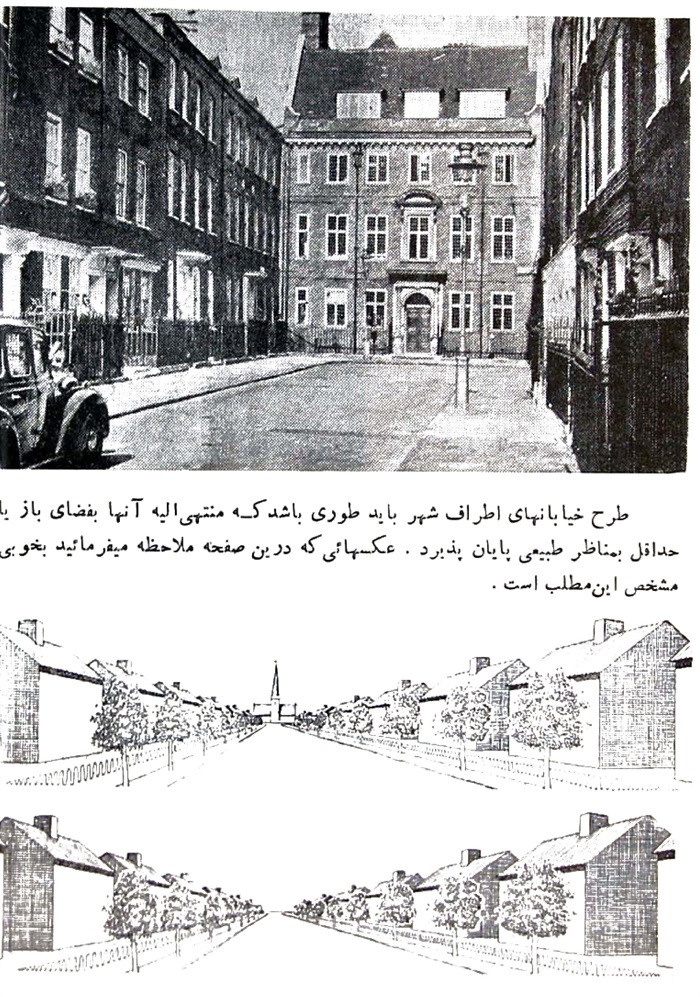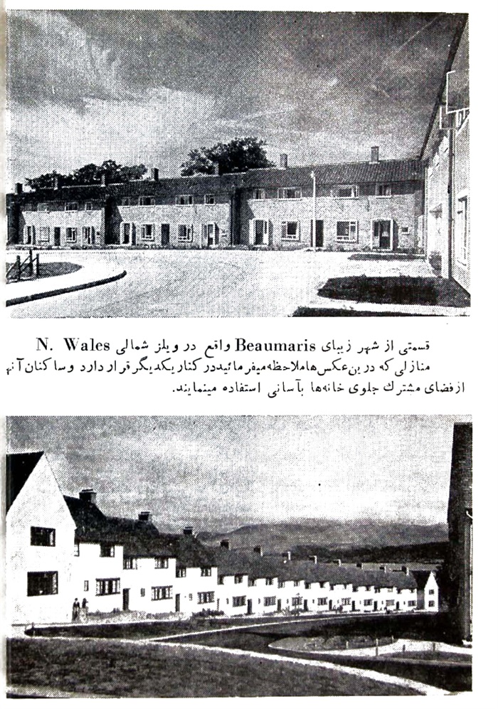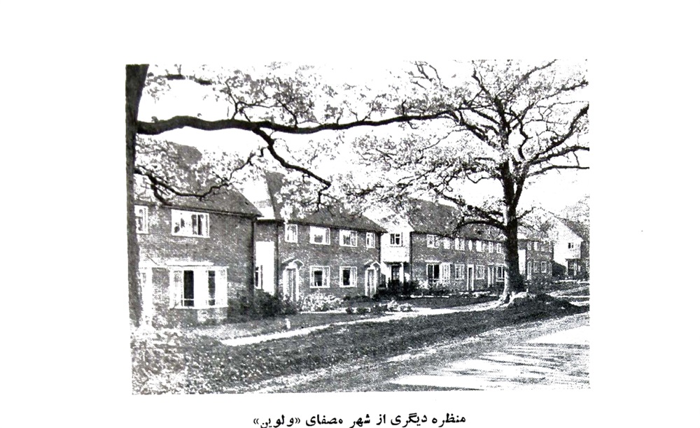 منظره ای از شهر «ولوین» Welwyn که بسال 1921 ایجاد گردیده است . این شهر زیبای نو بنیاد که ساختمان آن بسبك كاملا جدیدی است از فضای وسیع مشجری تشکیل میشود - Garden City )و چنانکه ملاحظه میفرمائید منازل ساده و خوش فرم آن که بفواصل معینی از یکدیگر قرار دارد منظره بدیعی بشهر داده است