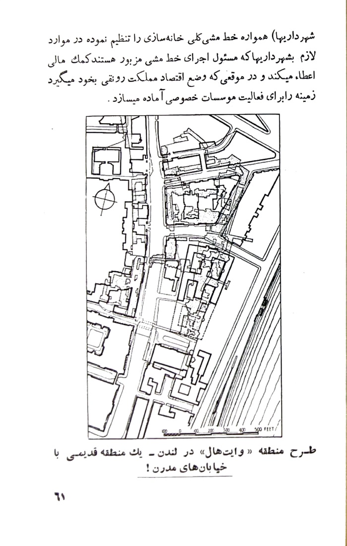 يك نگاه اجمالی بنقشه شهر تهران ما را با این حقیقت بارز مواجه می نماید که بهیچوجه اصول و موازین شهر سازی در طرح و تنظیم آن رعایت نشده است. بگفته یکی از مهندسان شهرساز شهر تهران ببطری دهان باریکی میماند که تمام محتوی آن در داخل شیشه کوچکی جای دارد و هر روز چندبار این محتوی بافشار از دهانه باريك بطرى (حدود بازار) خارج میشود .