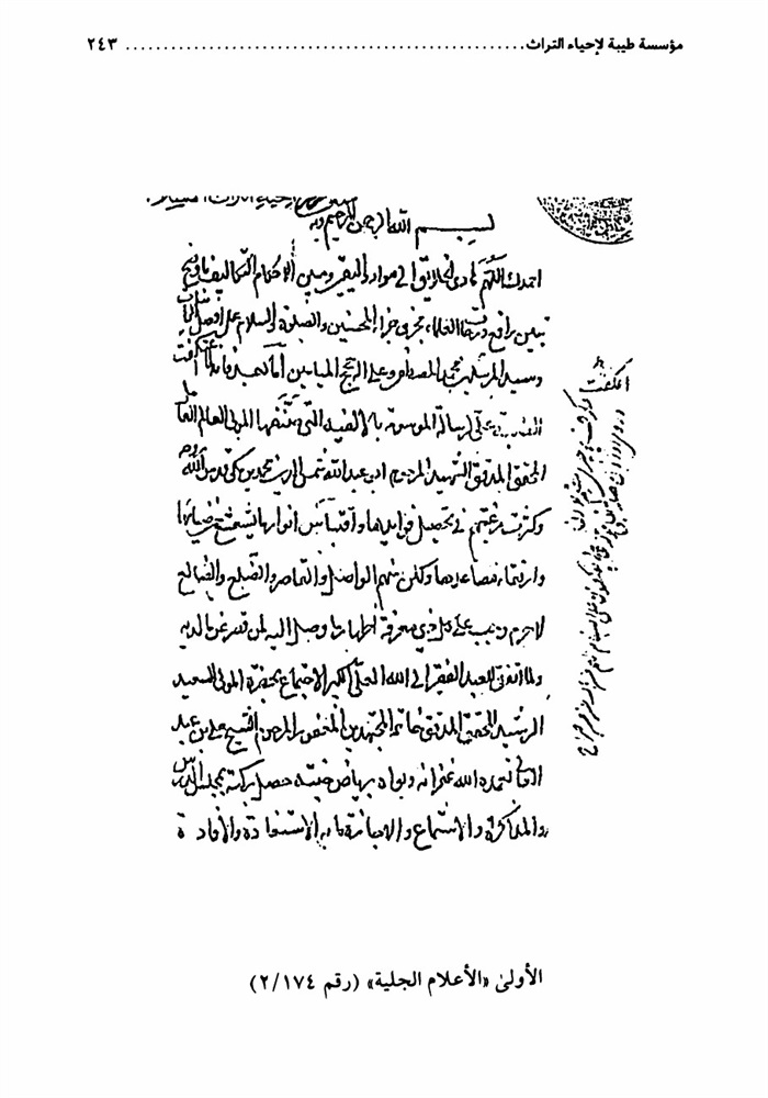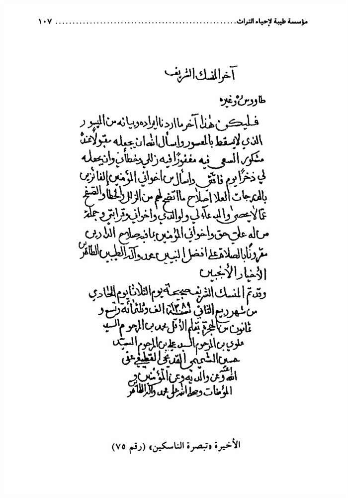 و قد قامت مؤسستنا ()، خدمةً لهذا التراث بجمع المخطوطات التي تخص أعلام المنطقة و إحياء تراثها العلمي، و قد وفّقنا الله تعالى للعثور على كثير من مصوّرات المخطوطات التي ألّفها أعلامُنا من عدد من مكتبات العراق و ايران و البحرين و القطيف و الأحساء، و مازال البحث مستمراً و العمل قائماً على تحصيل ما يمكن تحصيله منها.