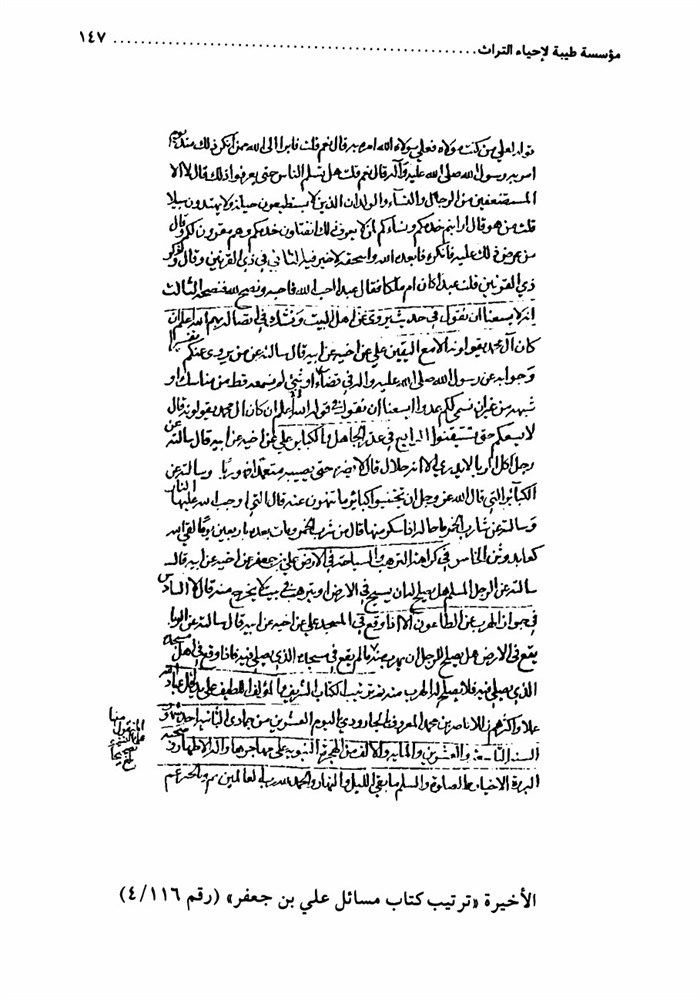 (5) التواصل مع المؤسسات المهتمّة بالتراث، و تبادل المعلومات و المخطوطات.