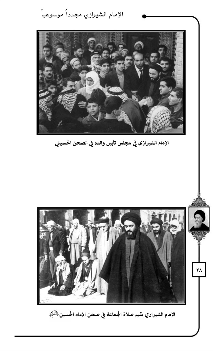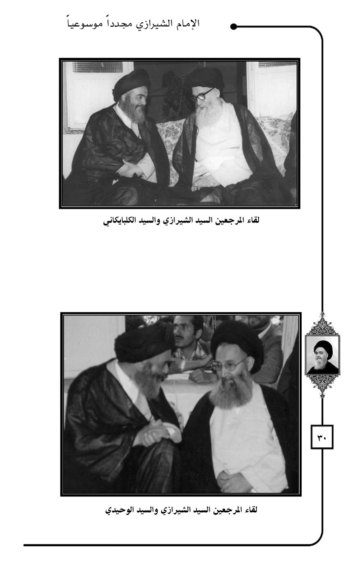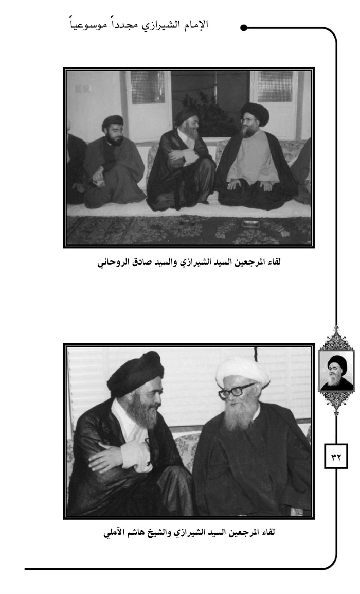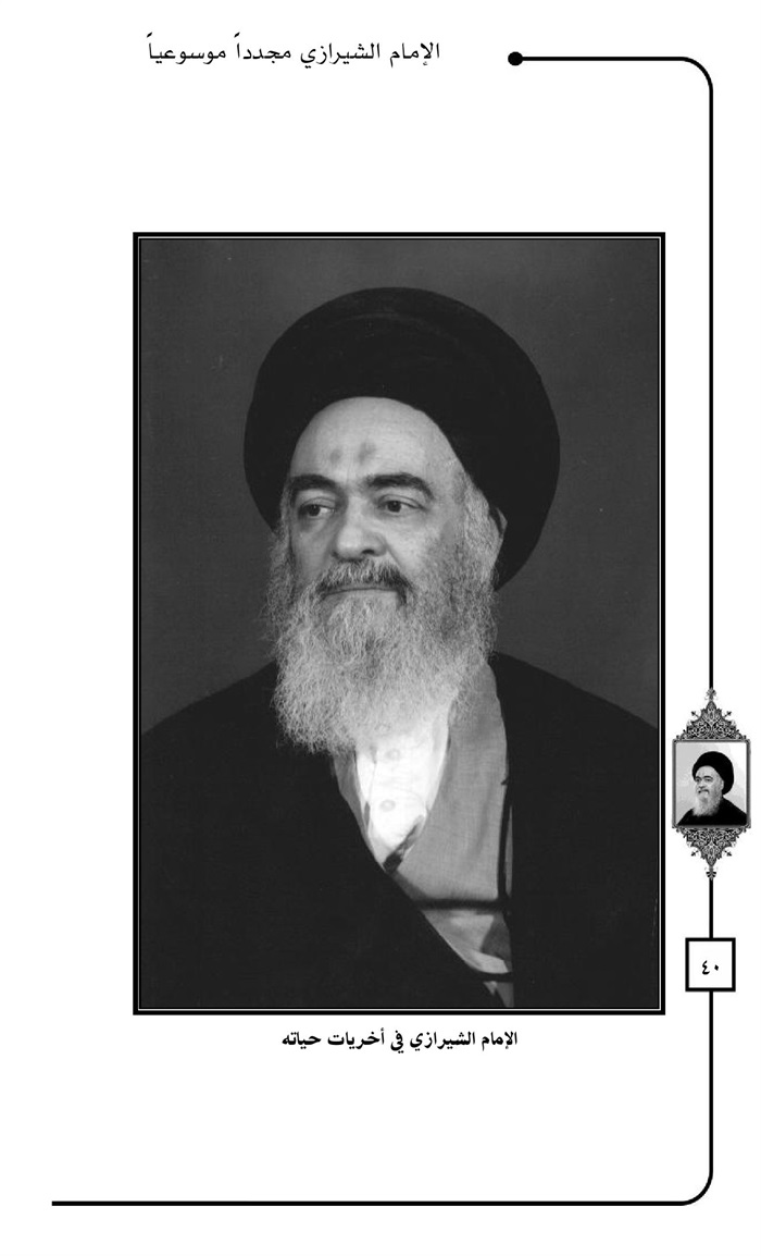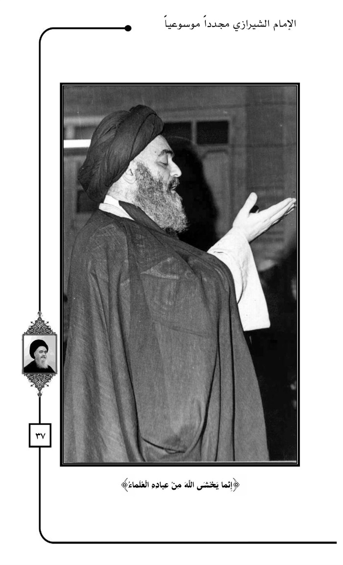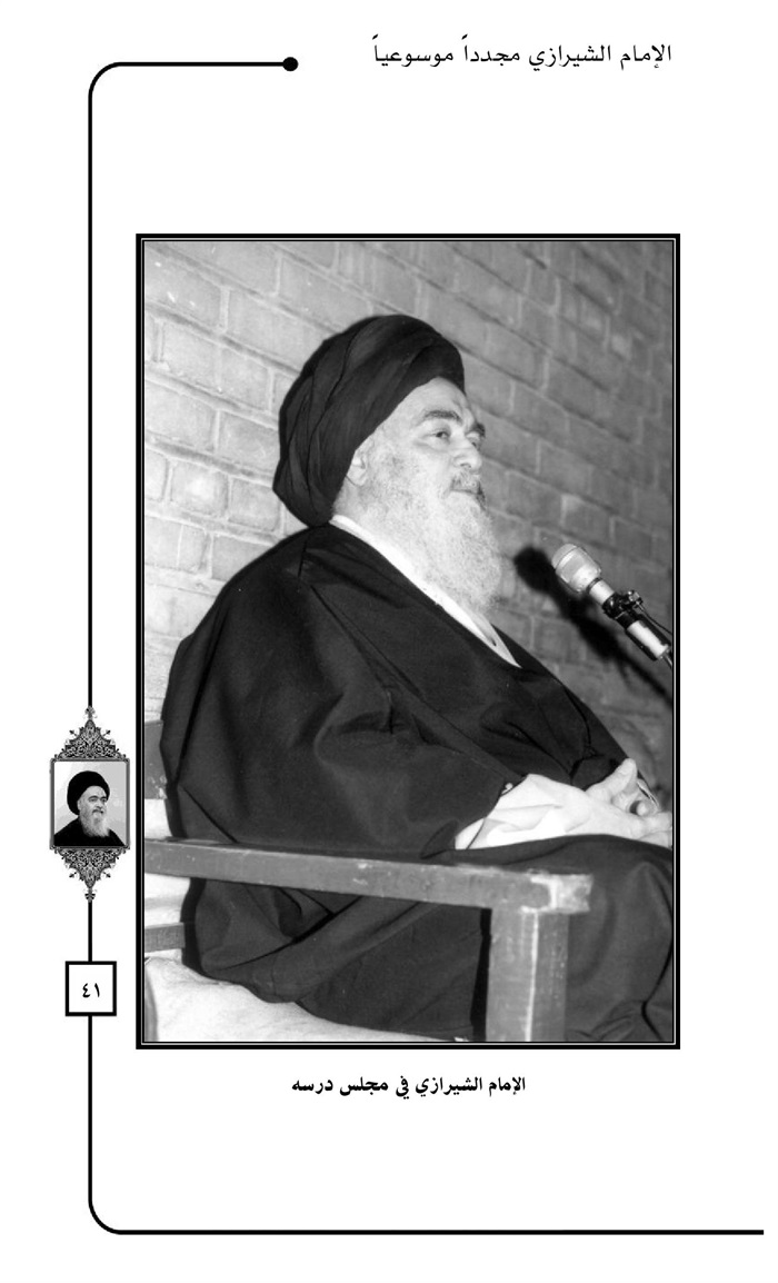 يمتاز فقهاء الإمامية وأعلامهم بديمومة العطاء والجد والمثابرة في كلّ لحظات حياتهم، وقد يَرَ من أولئك ثلةٌ أغنوا المكتبة الإسلامية والعربية بعطائهم العلمي، وكان في كلّ مدة يبرز عَلَمٌ مجدد فقد ورد في الأثر (إن اللّه سبحانه وتعالى يهيئ لهذه الأمة من يحيها وينشرها على كل رأس مائة عام) وكان منهم السادة الأعلام من آل الشيرازي من السيد محمد حسن الشيرازي (المتوفى 1985م)(1) وجهوده القيمة في سامراء وموقفه السياسي من قضية (التنباك) والتي كانت تمثل الفقه السياسي بأنصع صورة مروراً بمجتهديهم العظام إلى صاحب الذكرى السيد محمد الشيرازي (قدس سره) وانتهاءً وليس آخراً بسماحة المرجع الديني السيد صادق الشيرازي (دام ظله الوارف)، حتى عرفت وتميزت بمواقفها الدينية والعلمية والثقافية والاجتماعية والسياسية وغيرها.
