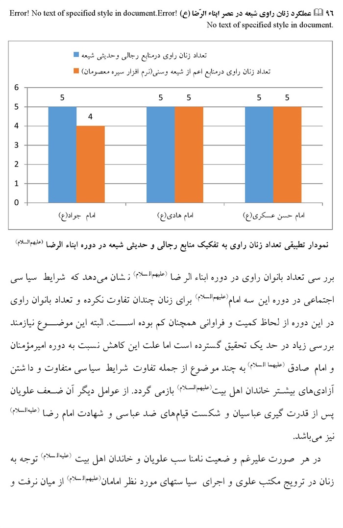 الرضا (عليهم السلام) منظور نظر نبوده و در خلال مباحث اشاره کوتاهی به نام برخی بانوان راوی شده است.