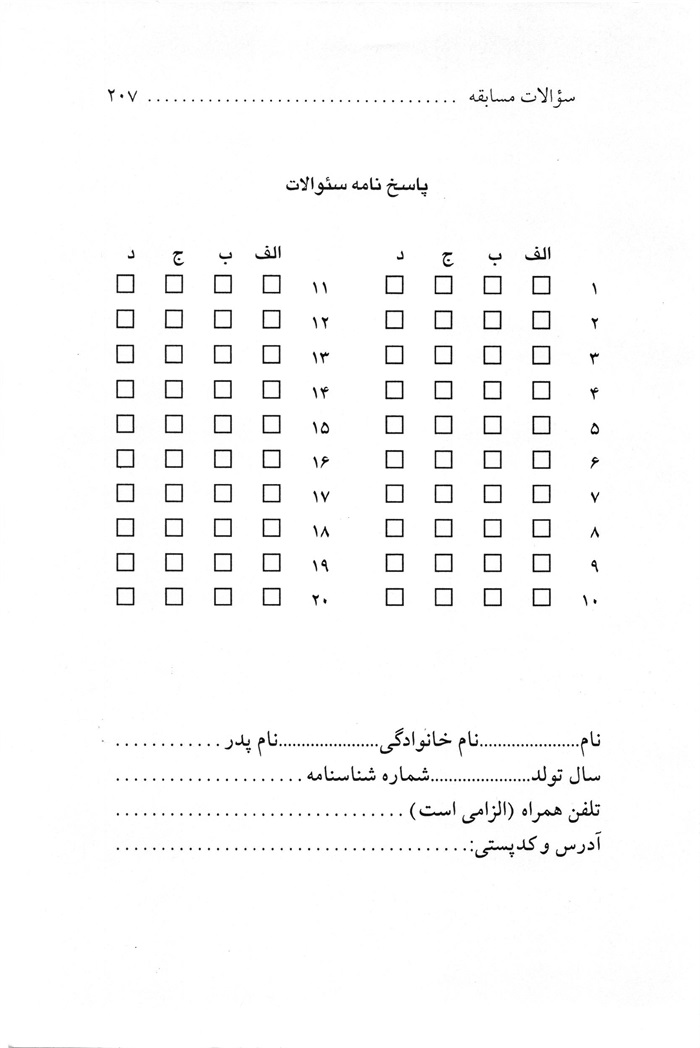 ضمنا سؤالات مسابقه در انتهای کتاب درج گردیده است.