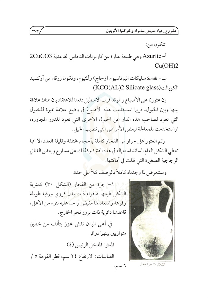 «التحليل المجهري لصبغات داخل أوانٍ فخارية» - من سامراء - ... 279