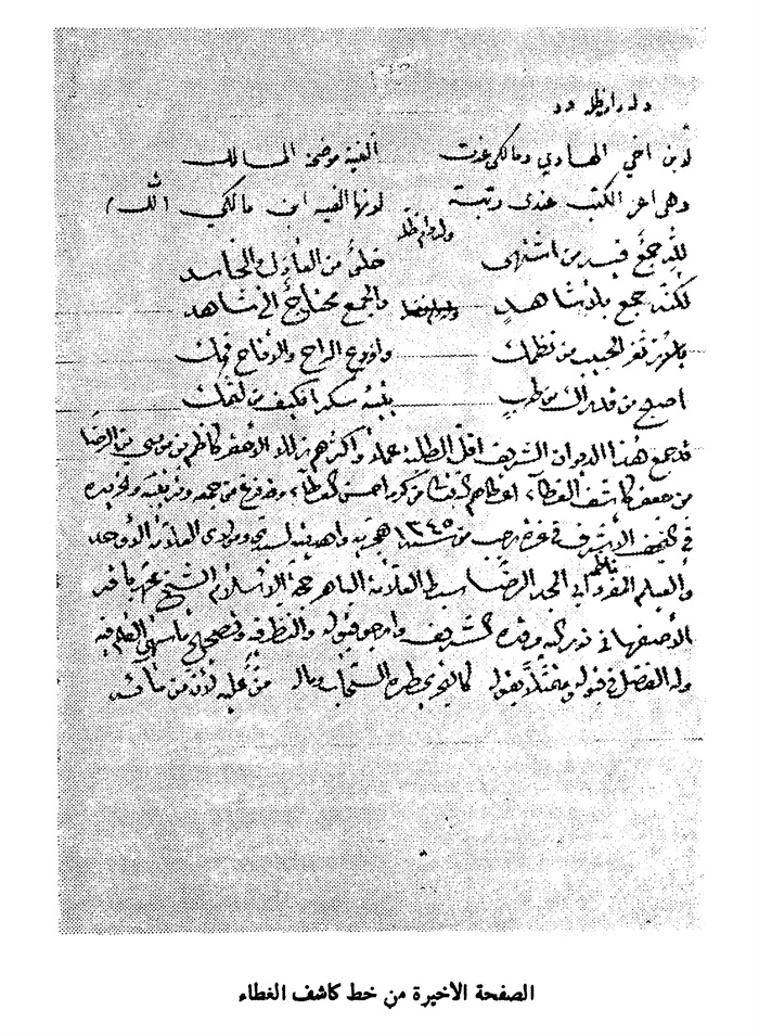 الأستاذ علي الخاقاني ، طبع المطبعة الحيدرية بالنجف سنة 1373 ه- .