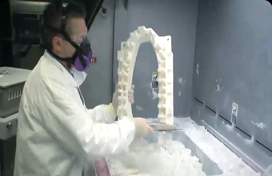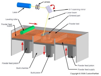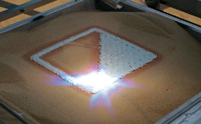 مدل های رایانه ای طراحی شده از اجسام در دست ساخت از طریق یک کارت حافظه به دستگاه انتقال مییابد. این فایل ها حاوی کدهایی برای هدایت دستگاه با سرعت مشخص جهت حرکت جعبه ماسه در راستای طولی و عرضی است. ضمن اینکه لنز، پرتوهای نور را جهت تولید درجه حرارتی بین 1400 تا 1600 درجه سانتیگراد متمرکز می کند و این حرارتی است که بیش از مقدار مورد نیاز برای ذوب ماسه است. طی چند ساعت، جسم لایه به لایه در داخل محدوده جعبه ماسه تشکیل می شود و در هر لحظه فقط سطحی ترین لایه رویت پذیر است.
