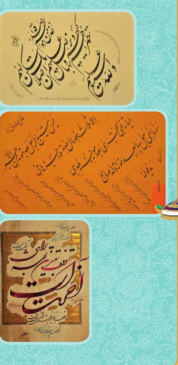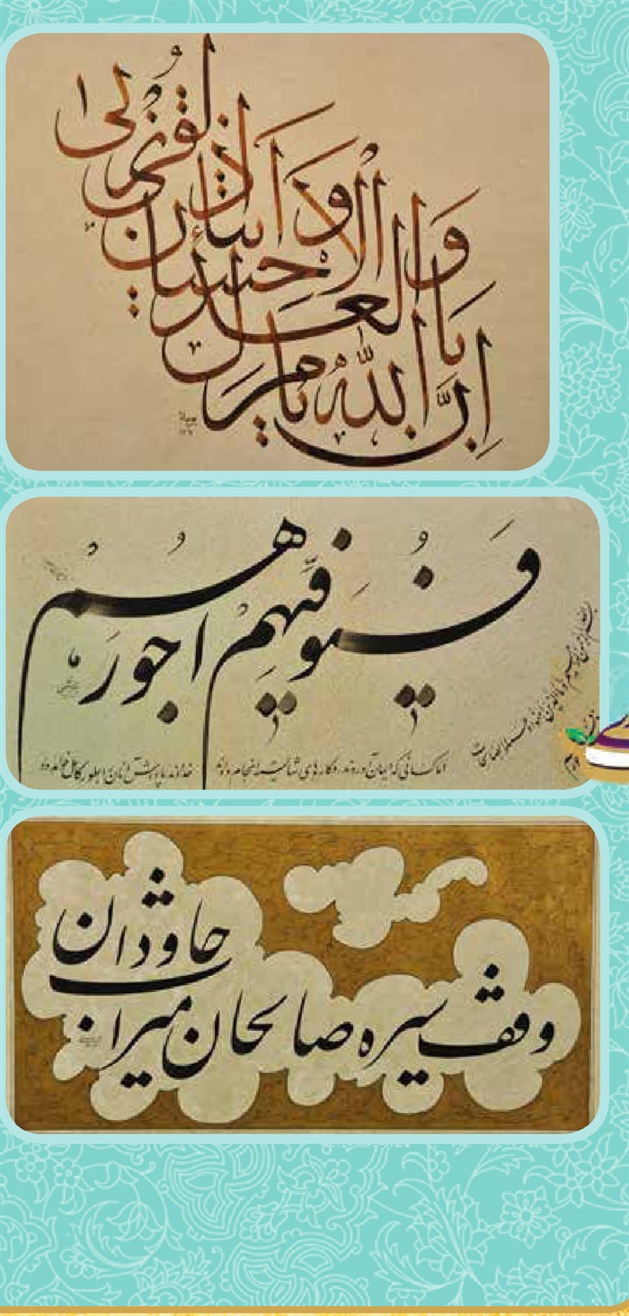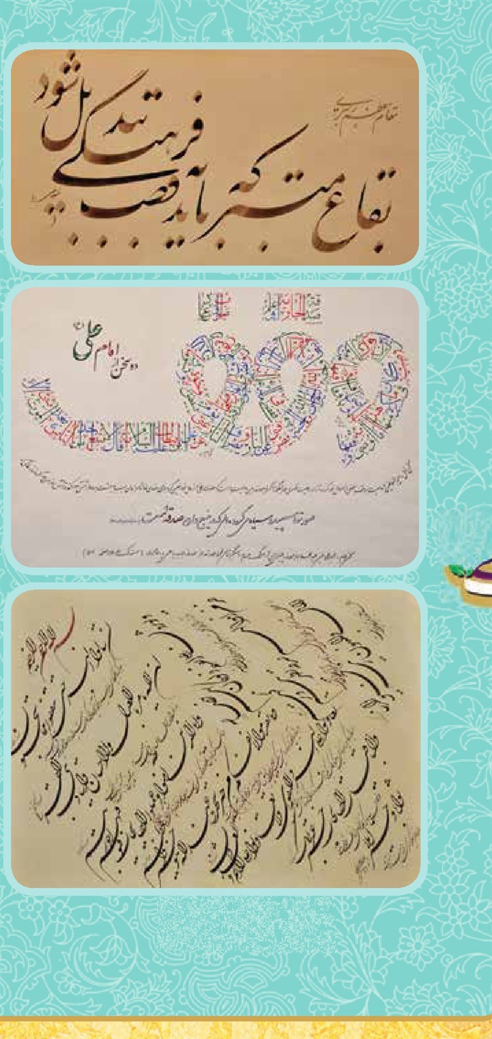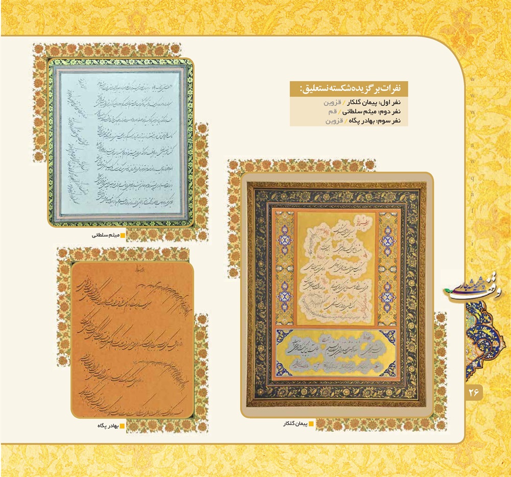 خط نستعلیق: نفر دوم، سید منصور میرایی نفر سوم، سید عباس علوی - سهیلا احمدی