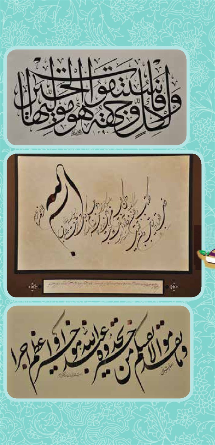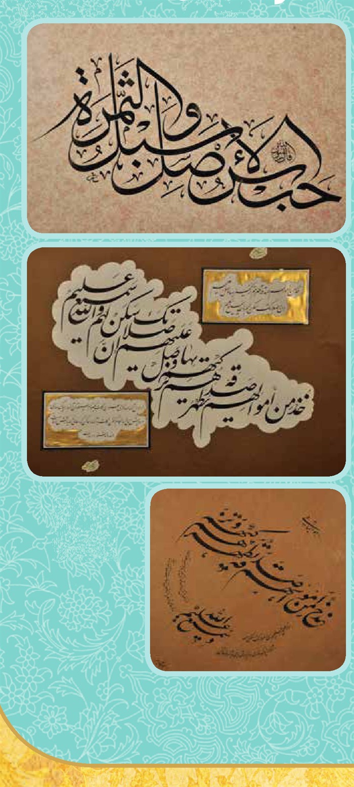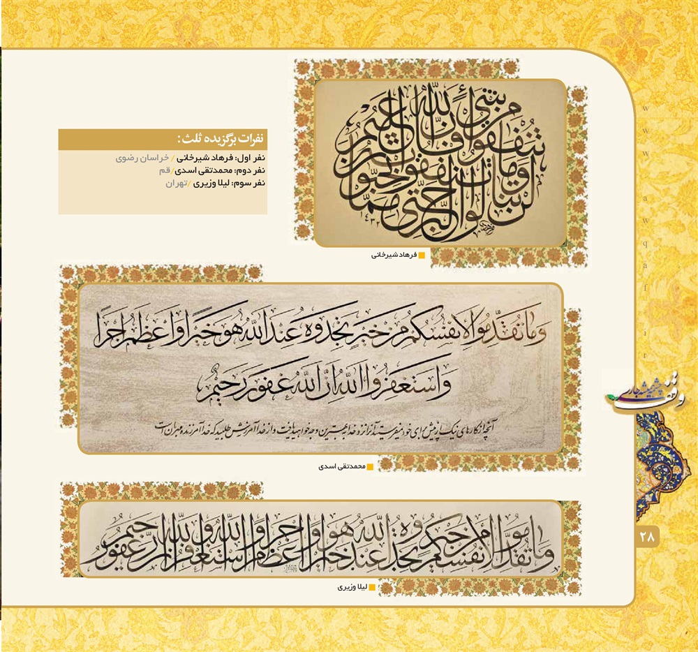 خط ثلث: نفر اول، نفیسه تقوی نفر دوم، مجید جدیدی نفر سوم، مهرداد داوودی