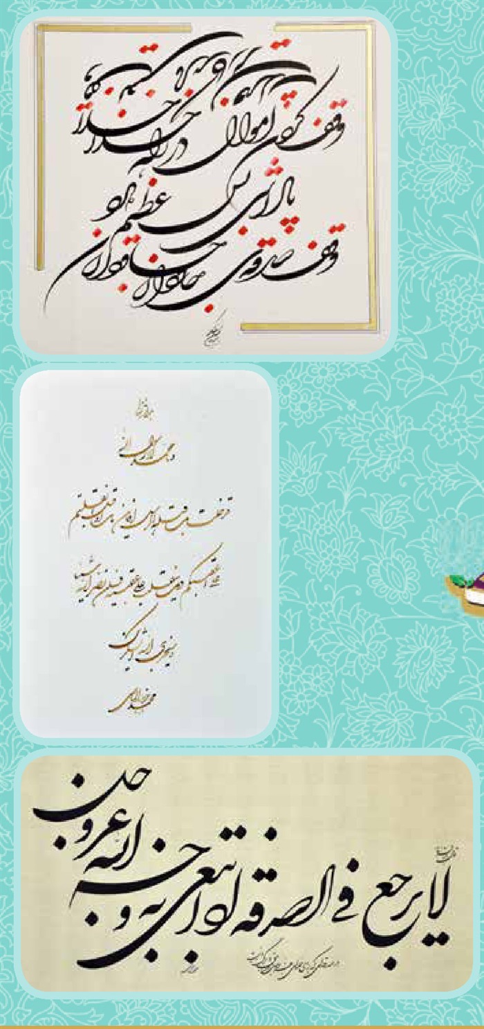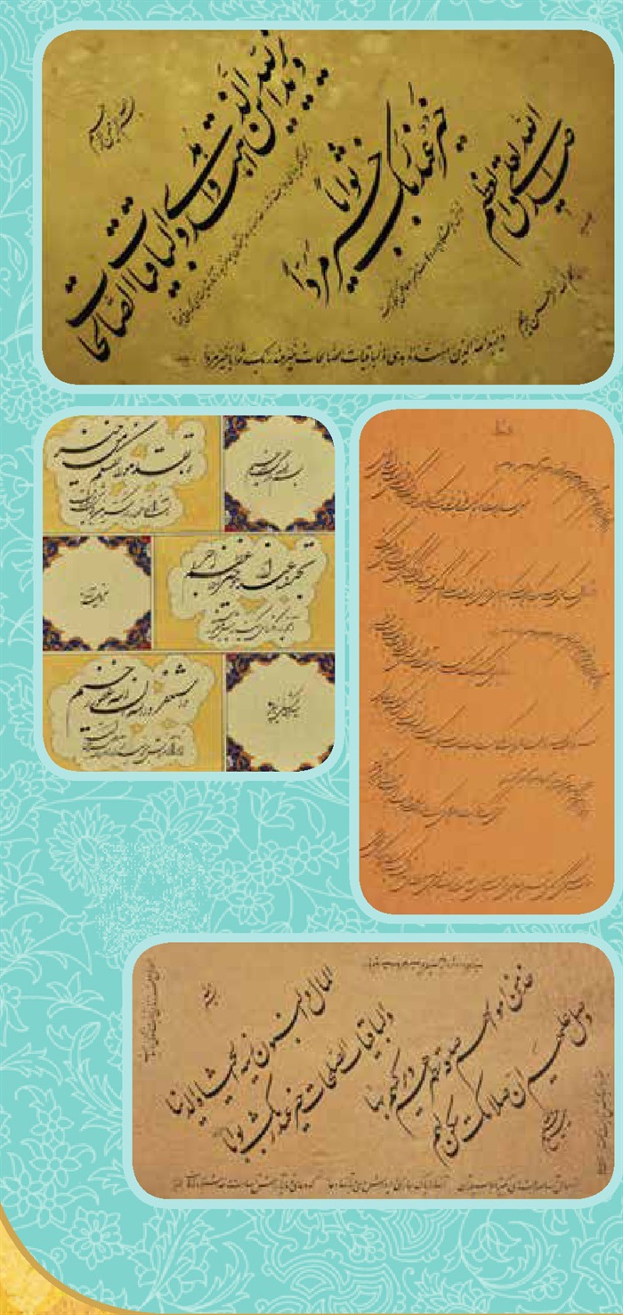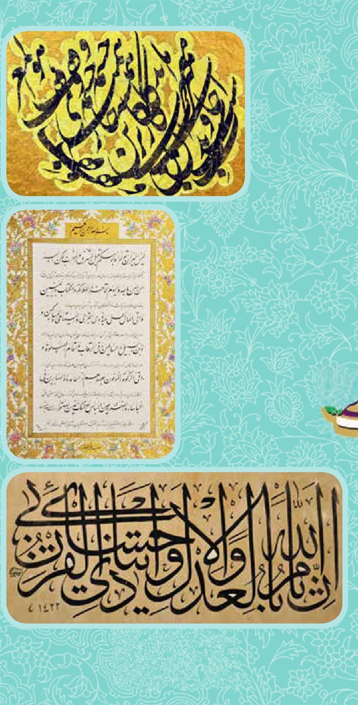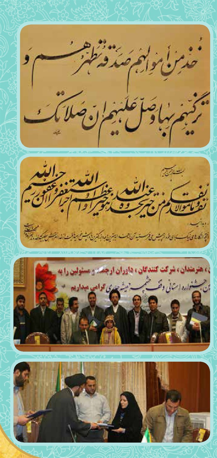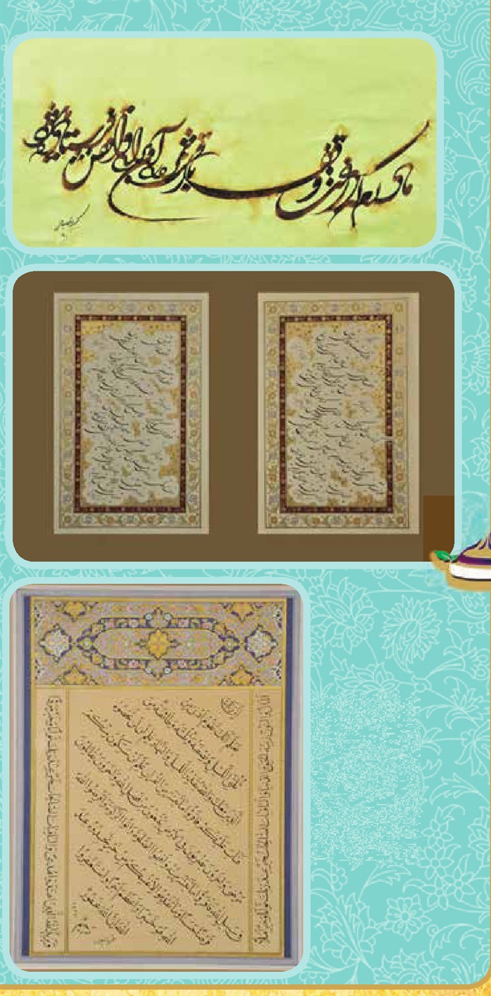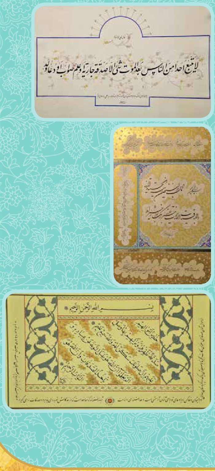 خط نستعلیق: نفر اول، سید حسن میرحسینی نفر دوم، سعید راستی نفر سوم، صلاح الدین پردل - مرضیه دهقانی