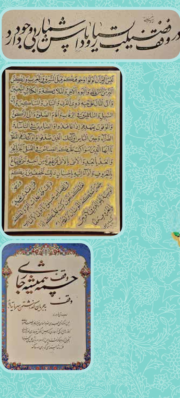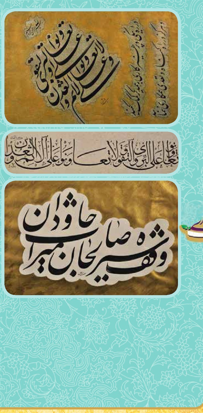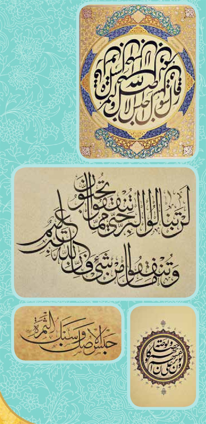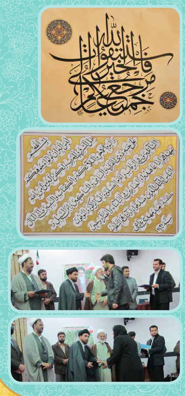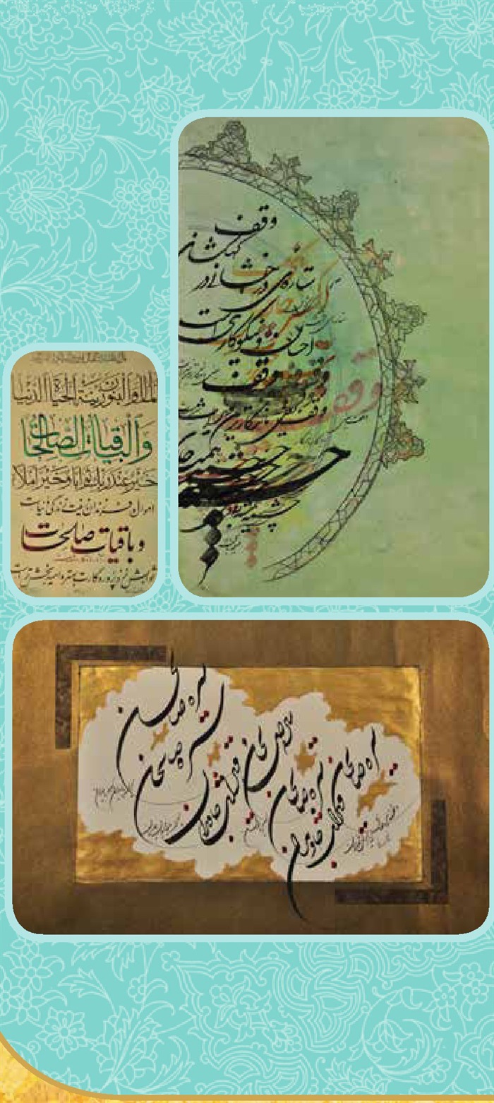 خط نستعلیق: نفر اول، سید حسن میرحسینی نفر دوم، سعید راستی نفر سوم، صلاح الدین پردل - مرضیه دهقانی