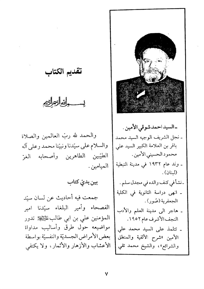 الذي بذل جهداً في تبويب هذا الكتاب ومراجعة كثير من الكتب التي لها علاقة في الموضوع، اذ راجع عدة كتب من كتب الطب القديم والأحاديث الواردة عن النبی الكريم (صلی الله علیه و آله و سلم) والأئمة الأطهار(علیهم السلام)، ثم لم يكتف بذلك بل اضاف عليها آراء الطب الحديث من بطون الكتب الطبية والمجلات مما اضفى على العناوين رونقاً وزيادة فوائد تغني المطالع .