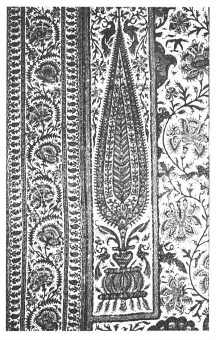از دوران غزنویان نیز پارچه هایی منقوش به دست آمده است و درست در همین دوران در مصر، عمل چاپ کردن و مهر زدن طرح تزیین پارچه - که در زمان قبطی ها مرسوم بود - تکمیل شد و از آن جا به اروپا و مخصوصا به آلمان، راه یافت (دیماند، ص238).