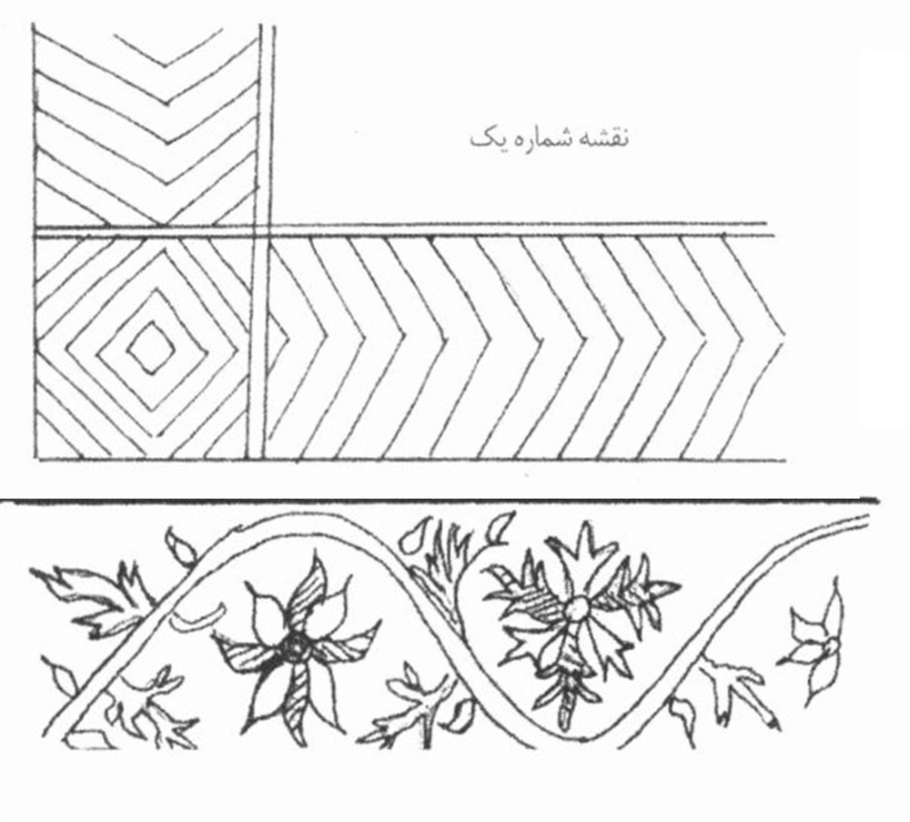نواری است به طول یک و عرض 3 سانتی متر که یک پیچک را در قوس بالا و پایین رونده نشان می دهد و در داخل هر قوس یک گل هشت پر با دو نوع گلبرگ خودنمایی می کند. برگ های جوانه و کنگره دار، این قوس ها را تزیین کرده اند. (نقشه شماره دو)