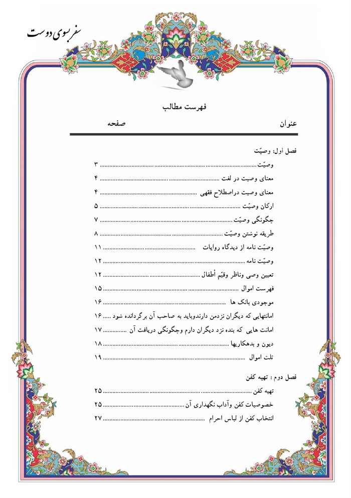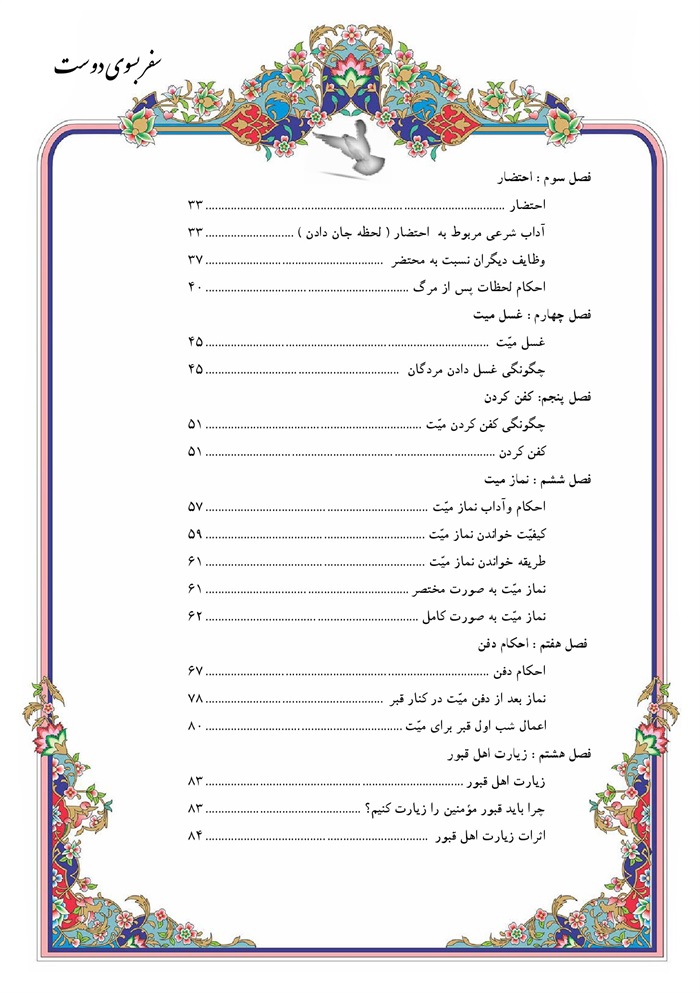 عنوان دیگر :آنچه باید از آداب سفر به آخرت بدانید وصیت، غسل، کفن، دفن، آداب زیارت اهل قبور.