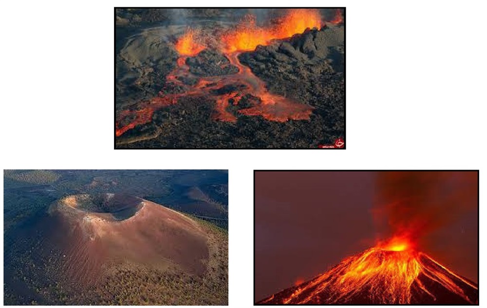 آتشفشان ها از نظر ساختمانی با هم متفاوتند. بعضی شکافهایی در پوسته زمین هستند بعضی گنبدی شکلند، بعضی هم ساختمان های کوه مانندی دارند که چاله ای در نوکشان است.