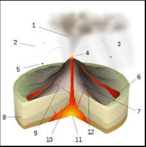 2- اتاقک مواد مذاب و داغ آتشفشان
