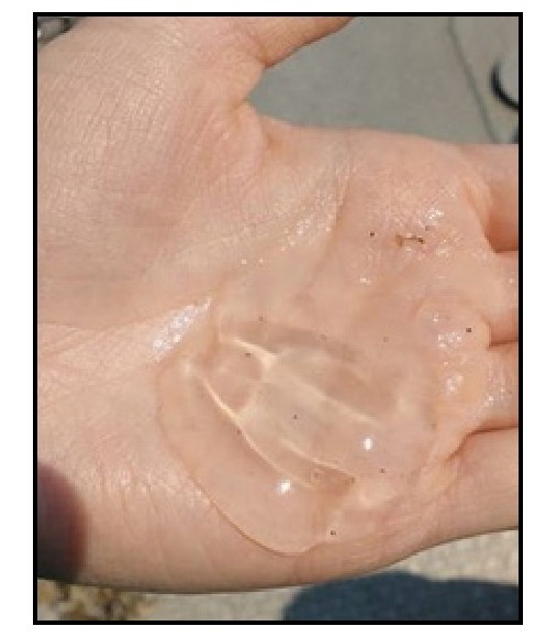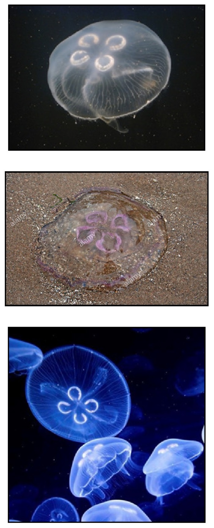 این موجود نسبتاً نامرئی به خاطر چهار اندام نعل اسبی که در بخش بالایی بدنش دیده می شود، «چتر دریایی ماه، نام گرفته است. این اندام های قابل مشاهده اندام های تولید مثل هستند که در مردان به رنگ سفید و در زنان به رنگ صورتی کمرنگ مشاهده می شوند. طول این موجودات از 2 ونیم سانتی متر به بالا می رسد. این موجودات آن چنان شفاف هستند که در بسیاری از مواقع نمی توان آن ها را به راحتی در آب دید. نکته ی جالب دیگر در مورد این عروس دریایی عمر جاوید آن هاست. آن ها