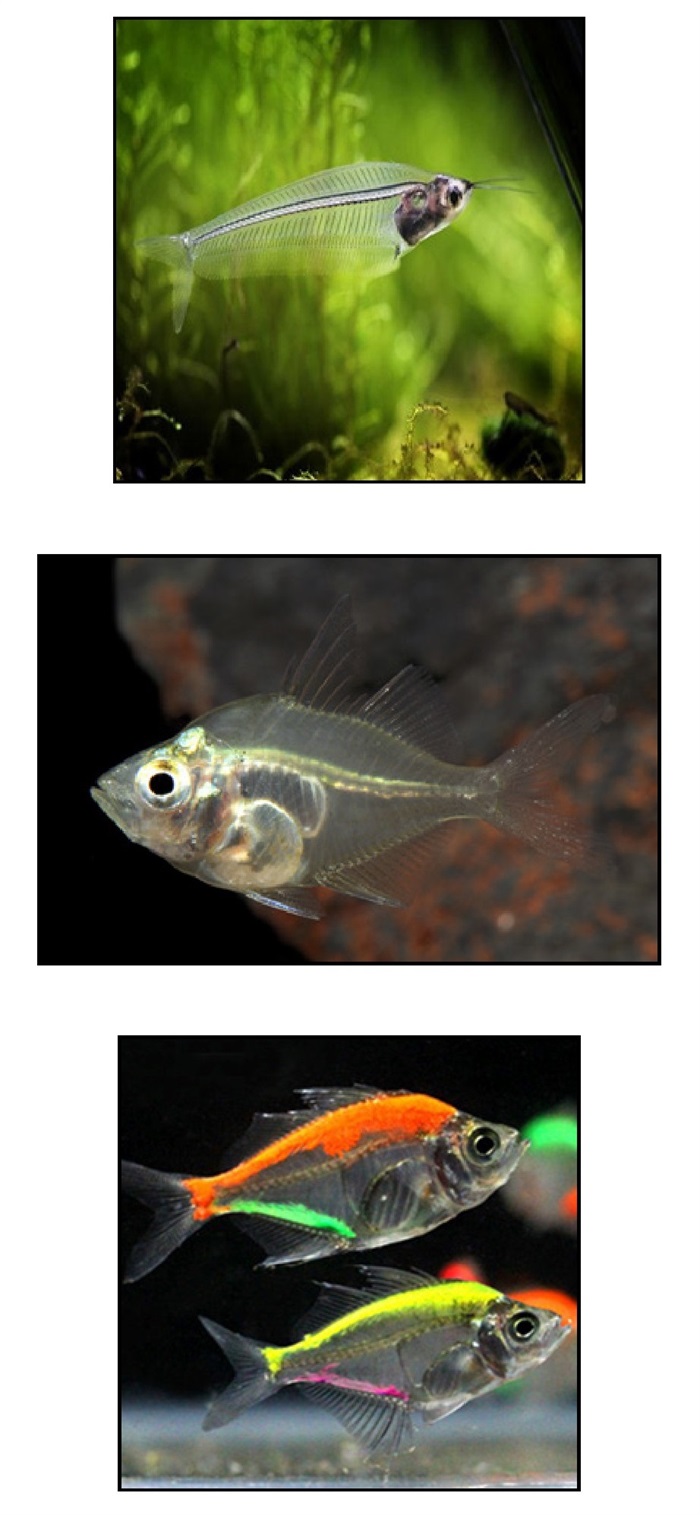 گلاس فیش یا ماهیان شیشه ای بومی آسیا به خصوص پاکستان، هند، نپال، بنگلادش، میانمار و تایلند بوده و تا اندازه ی 9 - 8 سانتی متری رشد می کنند. بدن این ماهی بسیار کوچک بوده و دارای نقاط سیاه و قرمز بر روی فلس ها است. نخاع ماهی از میان بدن آن قابل مشاهده است. این ماهیان به آرامی در آب ها، چشمه های تمیز، کانال ها، استخرها و در شالیزارها شنا می کنند. این ماهی ها معمولاً برای نگهداری در آکواریوم محبوبیت زیادی دارند. آنها شناگرهای ماهری در سطح میانی آکواریم ها بوده و در اسارت و ایجاد شرایط مناسب آب، در سلامت کامل خواهند بود. با وجود این که گلاس فیش های وحشی تقریباً شفاف هستند ولی اغلب به منظور تجارت، مواد رنگی غیر سمی به دلیل ایجاد رنگ های نئون درخشان به ماهی تزریق می شود، که دوام رنگ تا 4 - 3 ماه می باشد. عملیات رنگ کردن، موجب استرس ماهی شده و مستعد بیماری میشوند و نیز تزریقات منجر به تلفات شدید ماهی میگردد.