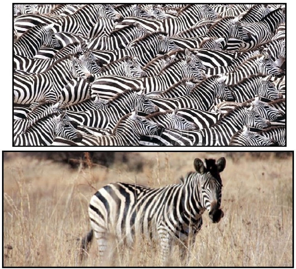 دانشمندان براین باورند که خطوط روی بدن گورخرها ممکن است از دو روش به آن ها برای استتار کمک کنند: