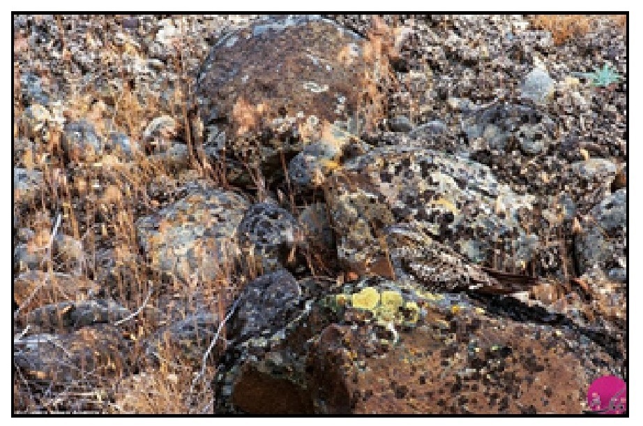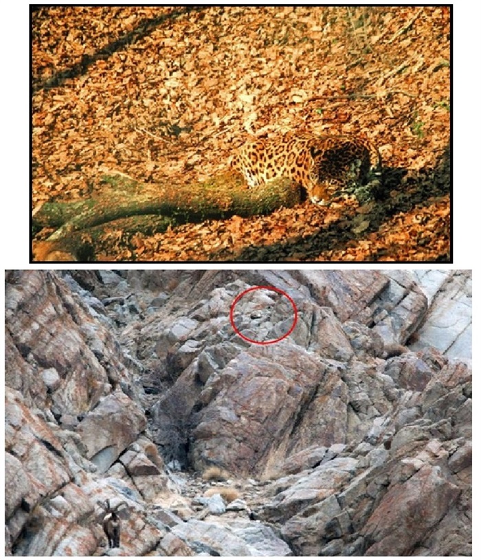 پلنگ هایی که در میان صخره ها زندگی می کنند، نیز به خوبی توسط خط و خال های روی پوستشان استتار می کنند. شکارچی حیله گر در میان سنگ ها برای شکار طعمه ی از همه جا بی خبر به نحوی استادانه استتار کرده است که نمی توان این جاندار را از صخره جدا دانست.
